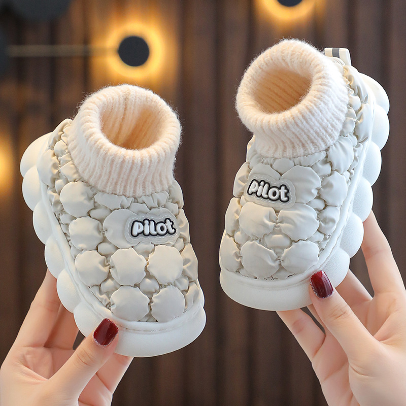 소년과 소녀를위한 겨울 어린이 면 슬리퍼 홈 방수 기모 따뜻한 미끄럼 방지 대형 중소 규모 어린이 아기 부드러운 면 슬리퍼