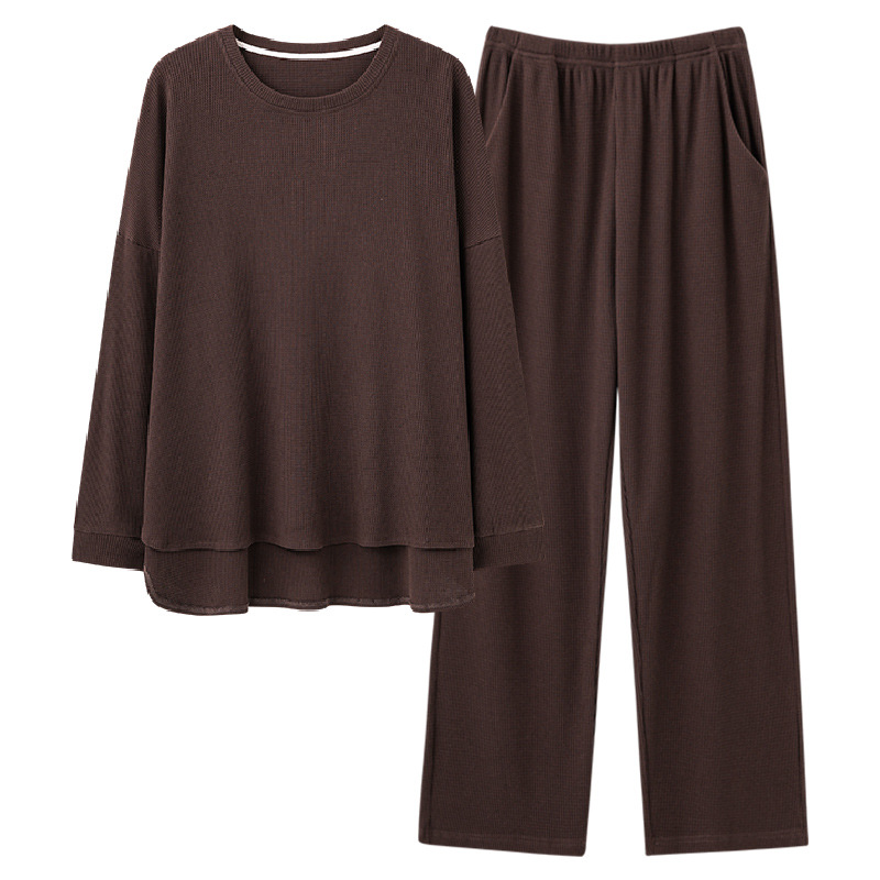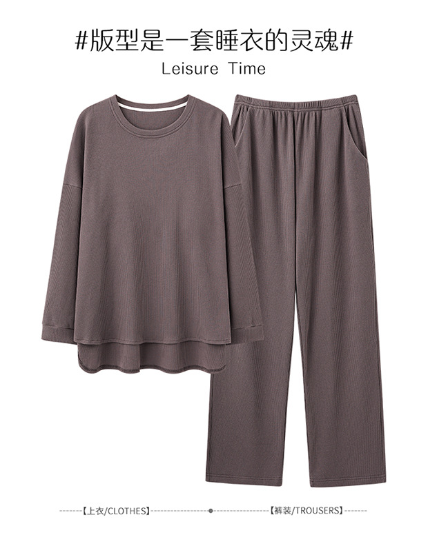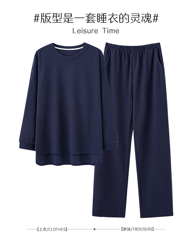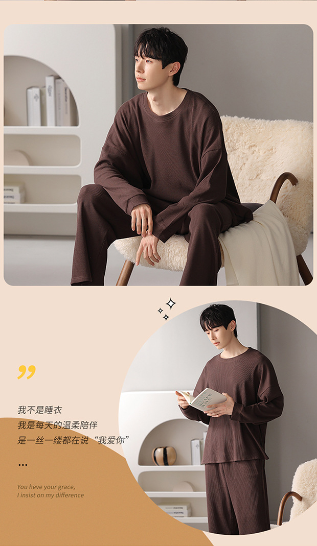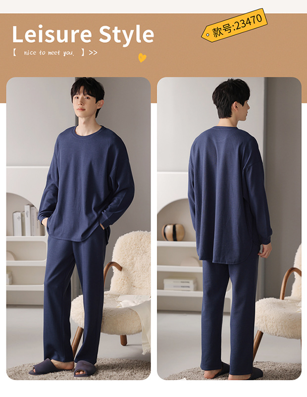 새로운 남자 잠옷 봄과 가을 면 긴팔 심플 솔리드 컬러 십대들은 바깥 집 옷 라운드 넥 세트 입을 수 있습니다스토어 가기
