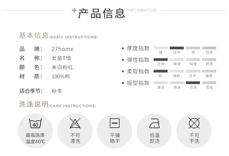 27home 한국판 아동복 도매 2024 가을 신상 여아 이너웨어 긴팔 티셔츠 유아복 해외배송