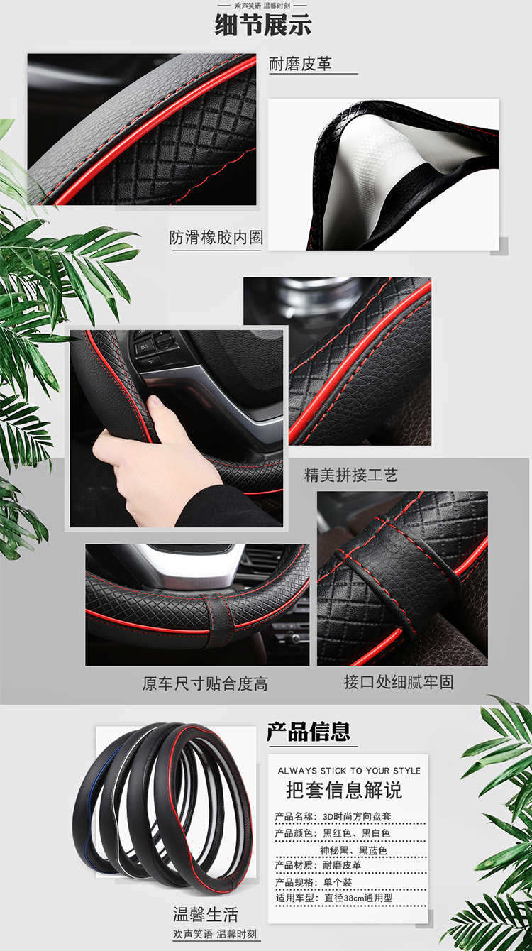 제조업체는 다양한 인조가죽으로 제작된 새로운 스타일의 패셔너블한 스티어링 휠 커버를 제작하여 사계절 내내 사용할 수 있도록 제작했습니다.