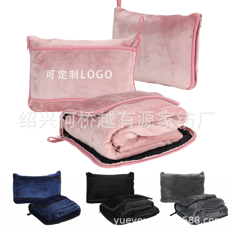 여행 담요 플란넬 2-in -1 접이식 담요 비행기 가방 다기능 쿠션 담요 자수