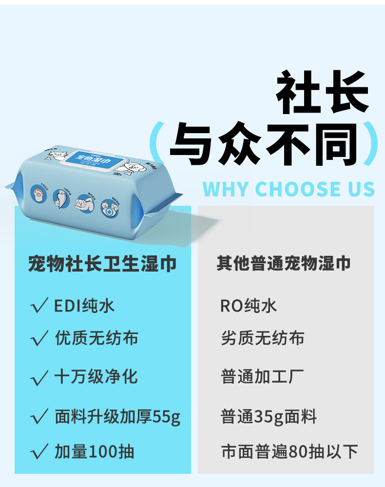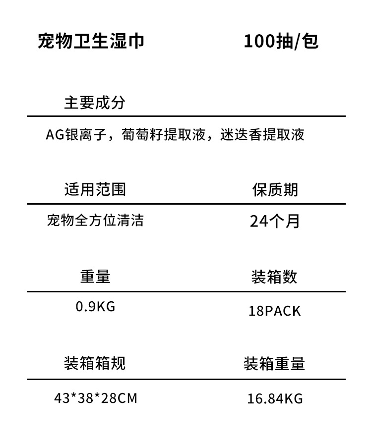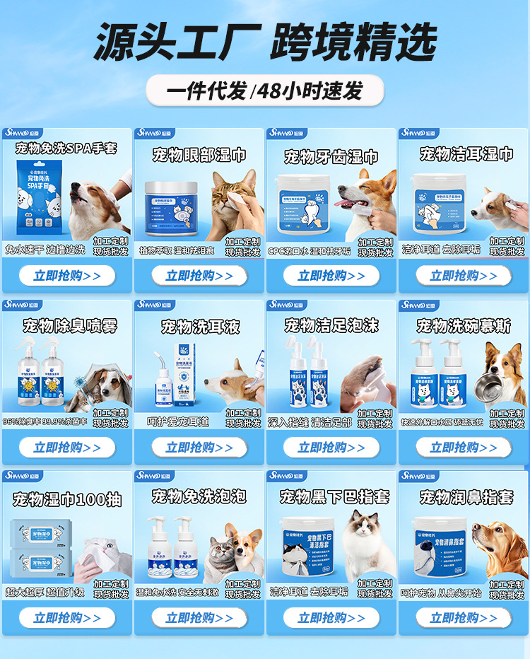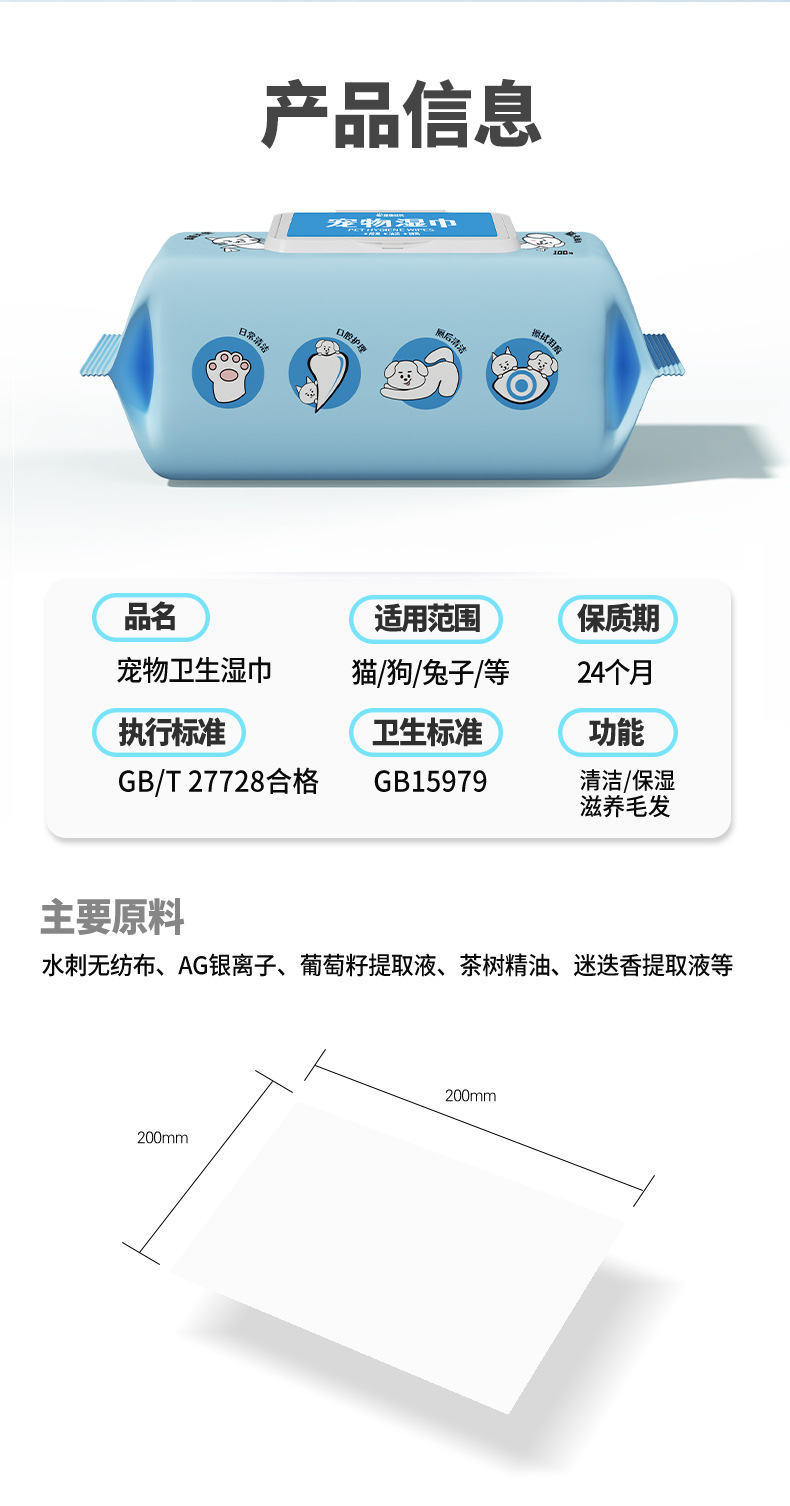반려동물 사장 위생 물티슈 개와 고양이 전용 물티슈 일회용 노워시 청소 세면도구 탈취