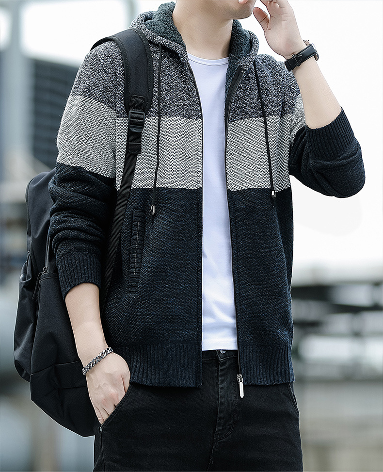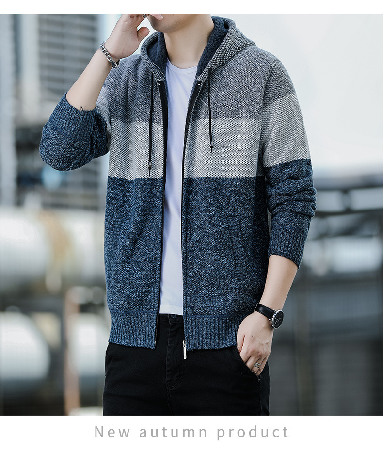 가을과 겨울 따뜻한 남성 자켓 남자의 한국 지퍼 후드 남성 니트 카디건 기모 두꺼운 탑 코트