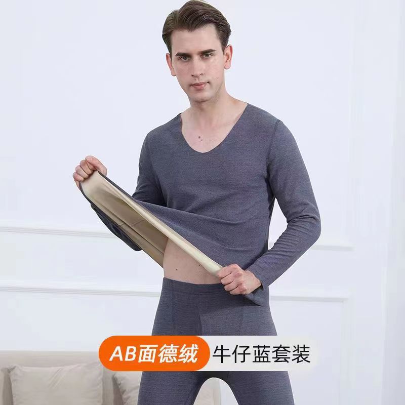 새로운 AB 양면 벨벳 열 속옷 세트 남자의 원활한 기모 패딩 바닥 가을 옷 가을 바지 사용자 정의 처리스토어 가기