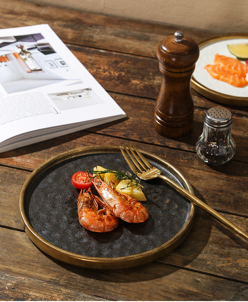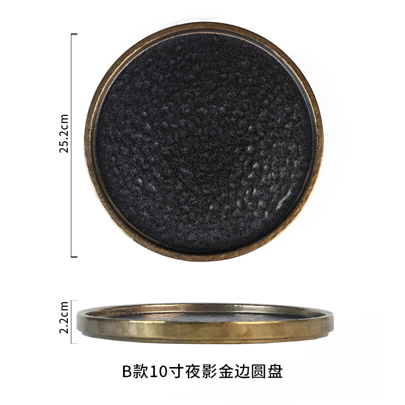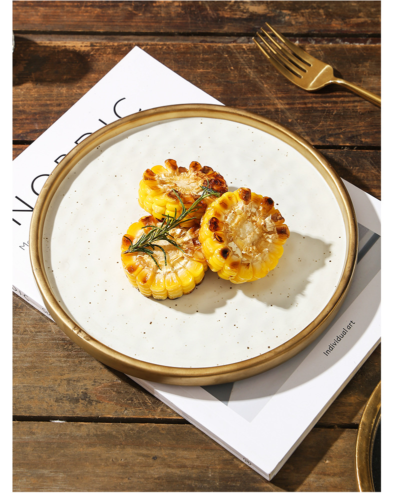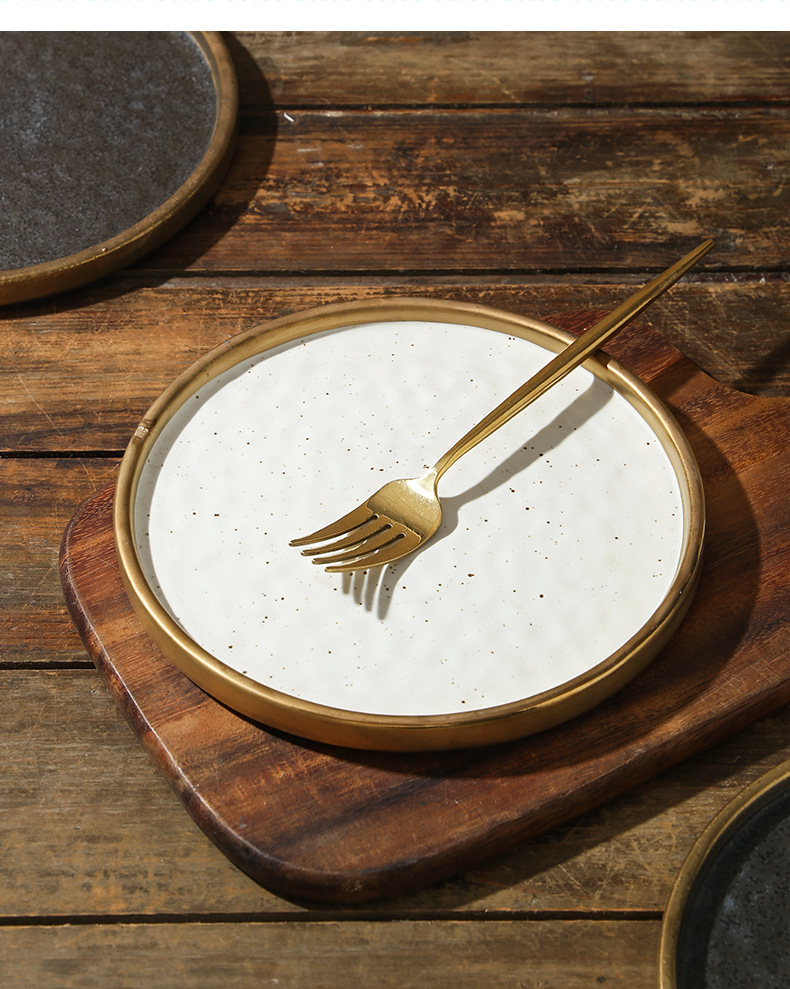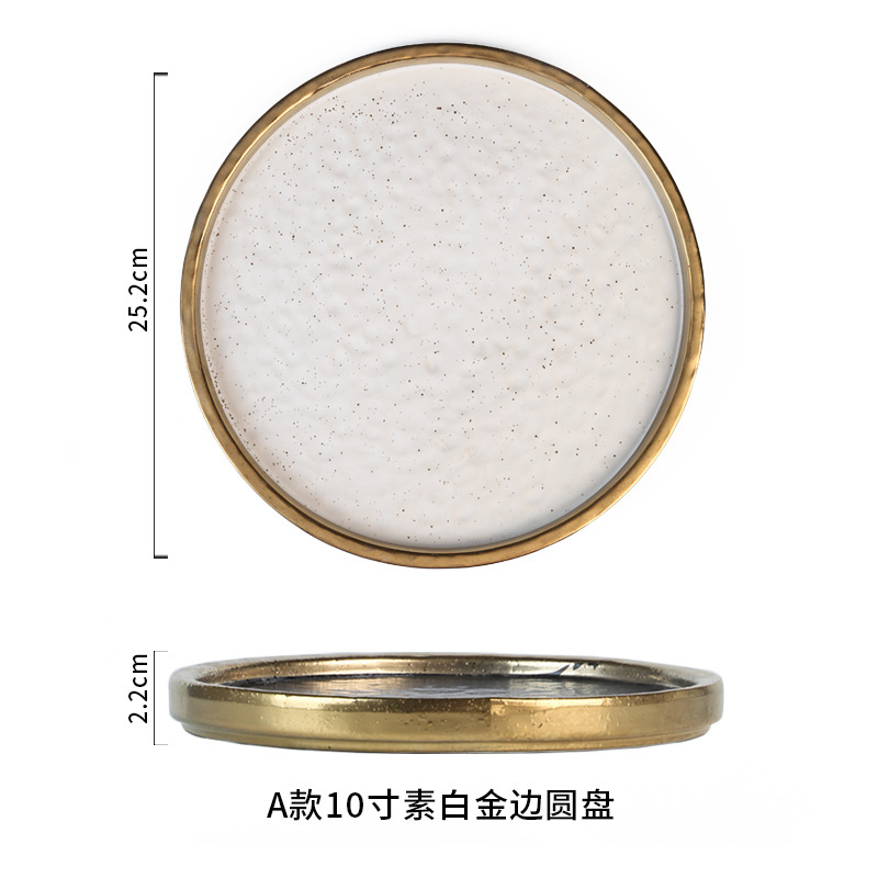 크로스보더 도금 세라믹 접시 평평한 접시 얕은 접시 파스타 서양식 접시 스테이크 접시 가정용 접시 라이트 럭셔리 상업용 트레이