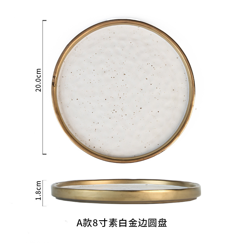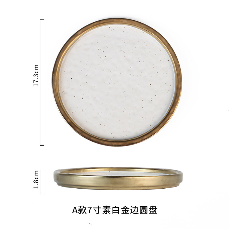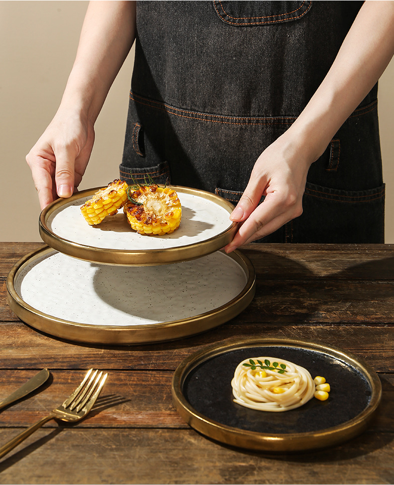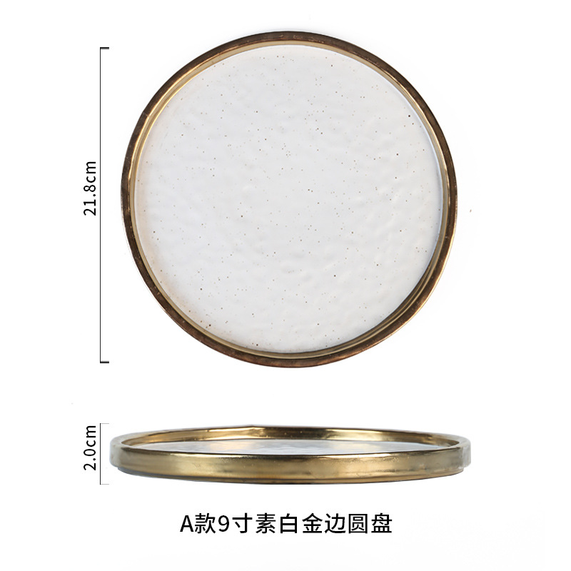크로스보더 도금 세라믹 접시 평평한 접시 얕은 접시 파스타 서양식 접시 스테이크 접시 가정용 접시 라이트 럭셔리 상업용 트레이스토어 가기