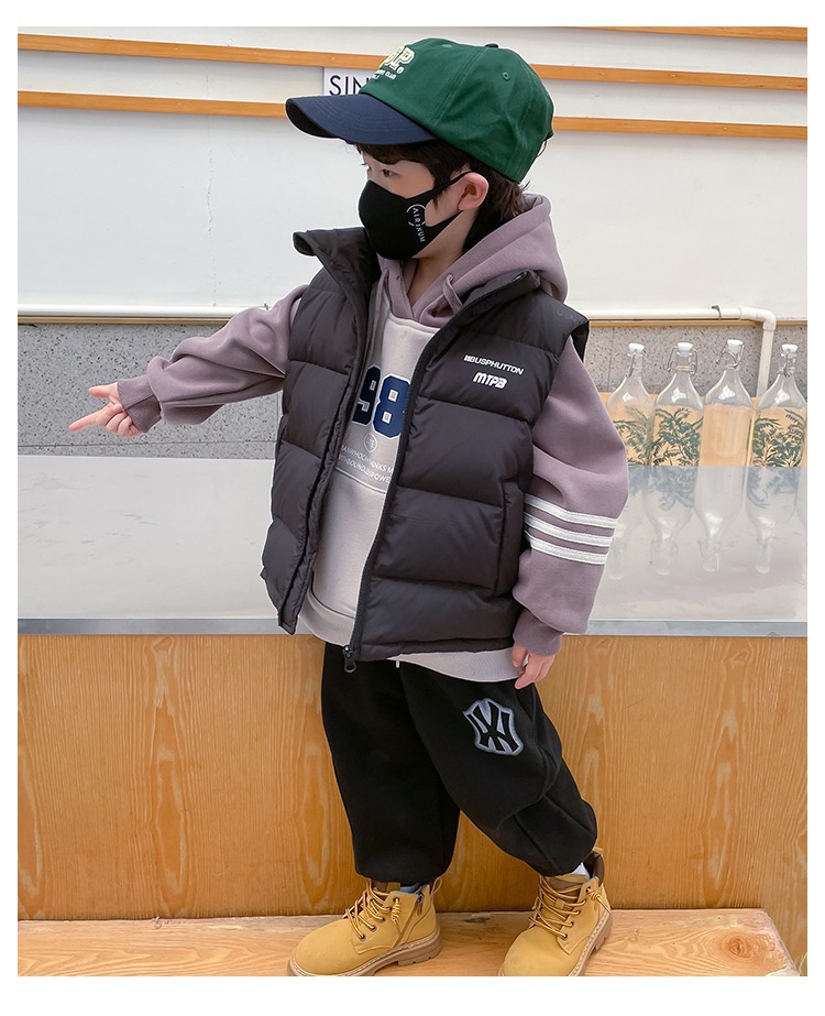 소년과 소녀를위한 한국 스타일 어린이 스탠드 칼라 조끼 아기 두꺼운 따뜻한 유행 인쇄 다운 면 조끼 가을과 겨울스토어 가기
