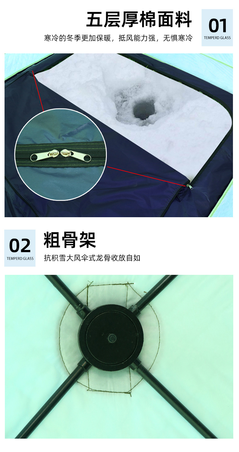 겨울 낚시 텐트 3-4인용 야외 캠핑용 면으로 두껍게 만든 보온 방한 장비