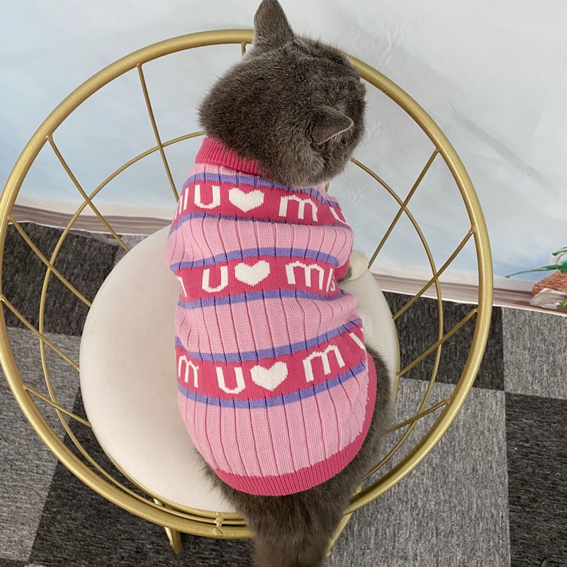 가을과 겨울 새로운 애완 동물 귀여운 핑크 스웨터 중소형 개 포메라니아 개 의류 고양이 머펫 따뜻한 의류스토어 가기