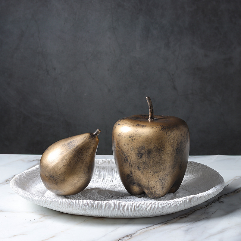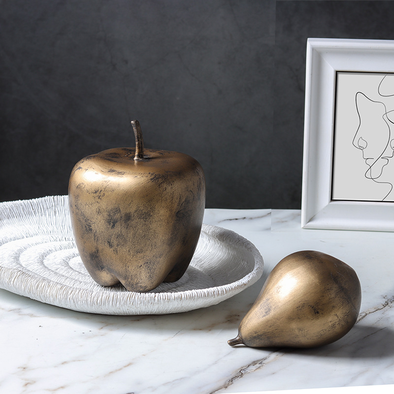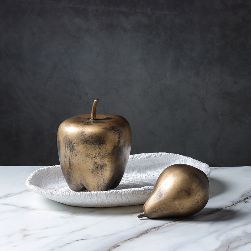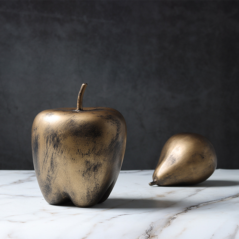 Wabi-sabi 스타일 청동 시뮬레이션 과일 사과 배 세라믹 장식품 오래된 복고풍 식탁 커피 테이블 책상 장식