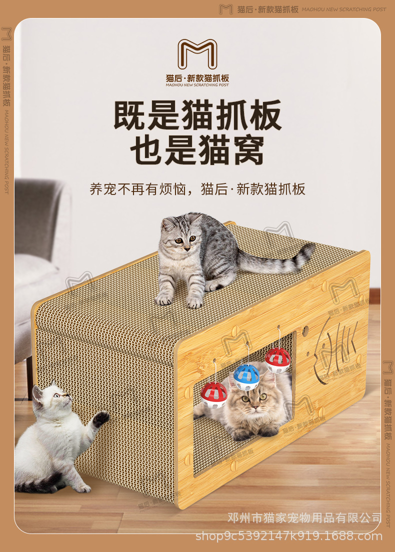 캣 백 뉴 캣 스크래치 보드 고양이 둥지 일체형 골판지 내마모성 비파편 수직 2 층 고양이 집 사계절 유니버설