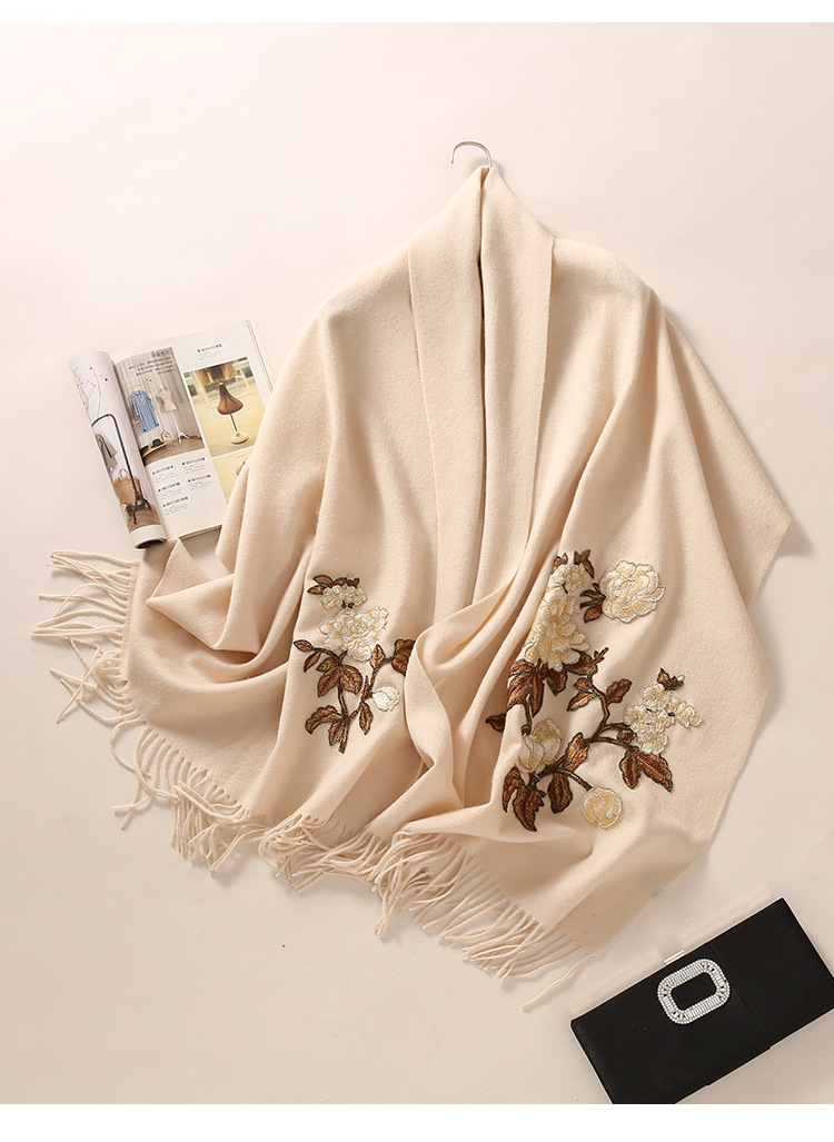 고급 자수 울 스카프 여성 겨울 모든 경기 따뜻한 중년 어머니 패션 숄 이중 목적 PT23Q110