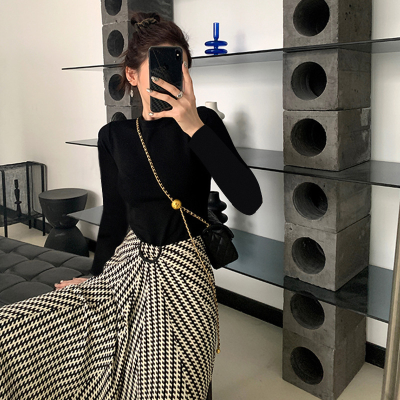 단색 심플 스타일 긴팔 티셔츠 여성용 모든 매치 탑 가을 새로운 슬림핏 슬리밍 기본 이너베이스 셔츠스토어 가기
