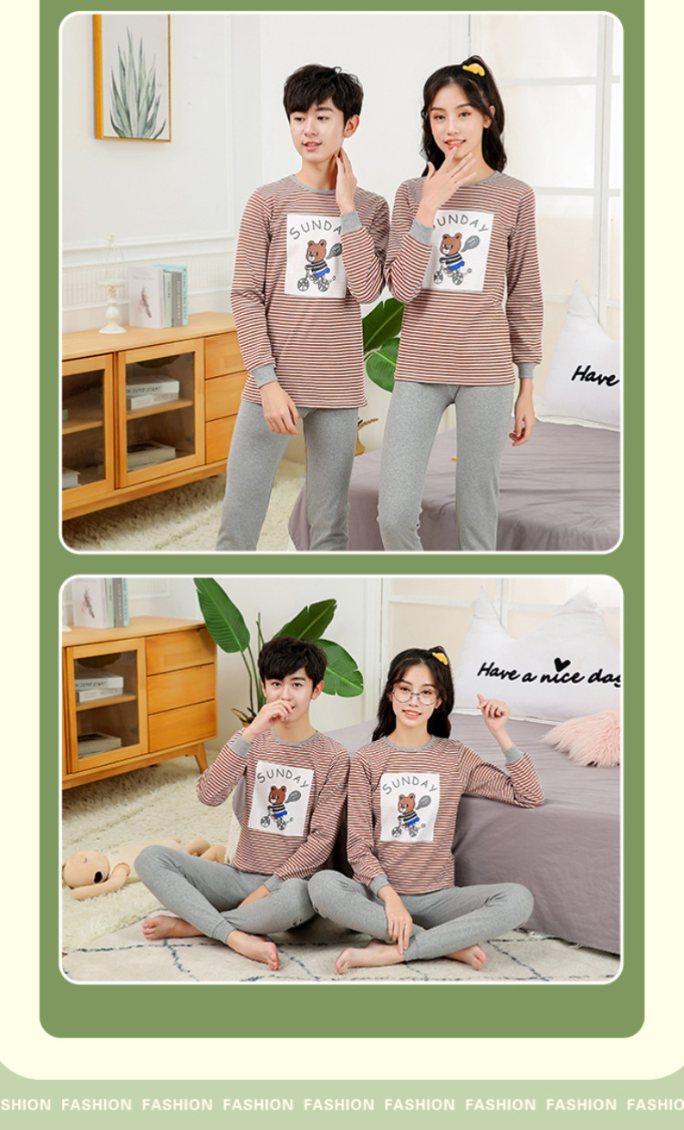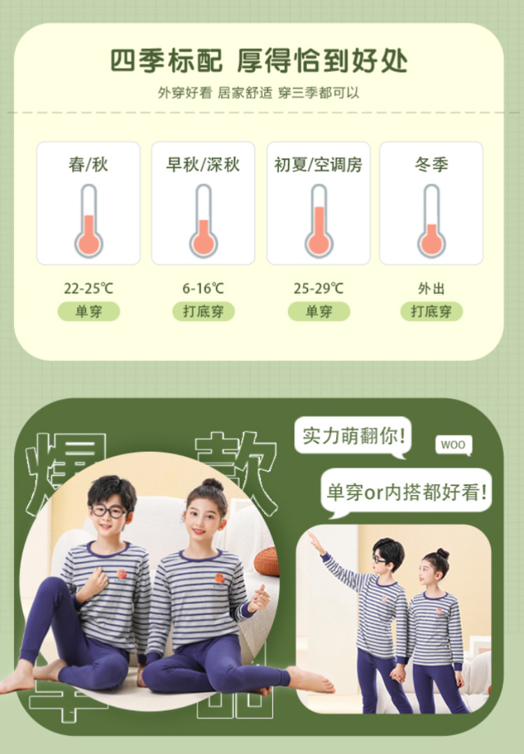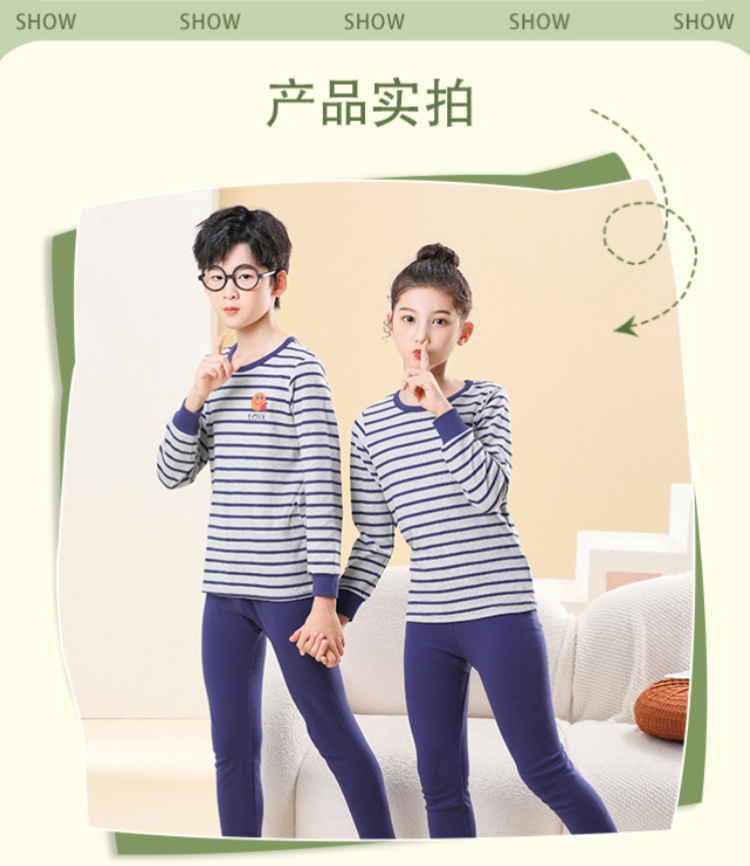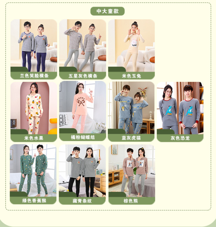 CUHK 아동 가정 의류 면 열 속옷 세트 라운드 넥 청소년 하의 잠옷 가을과 겨울 가을 옷 가을 바지스토어 가기