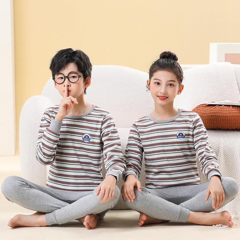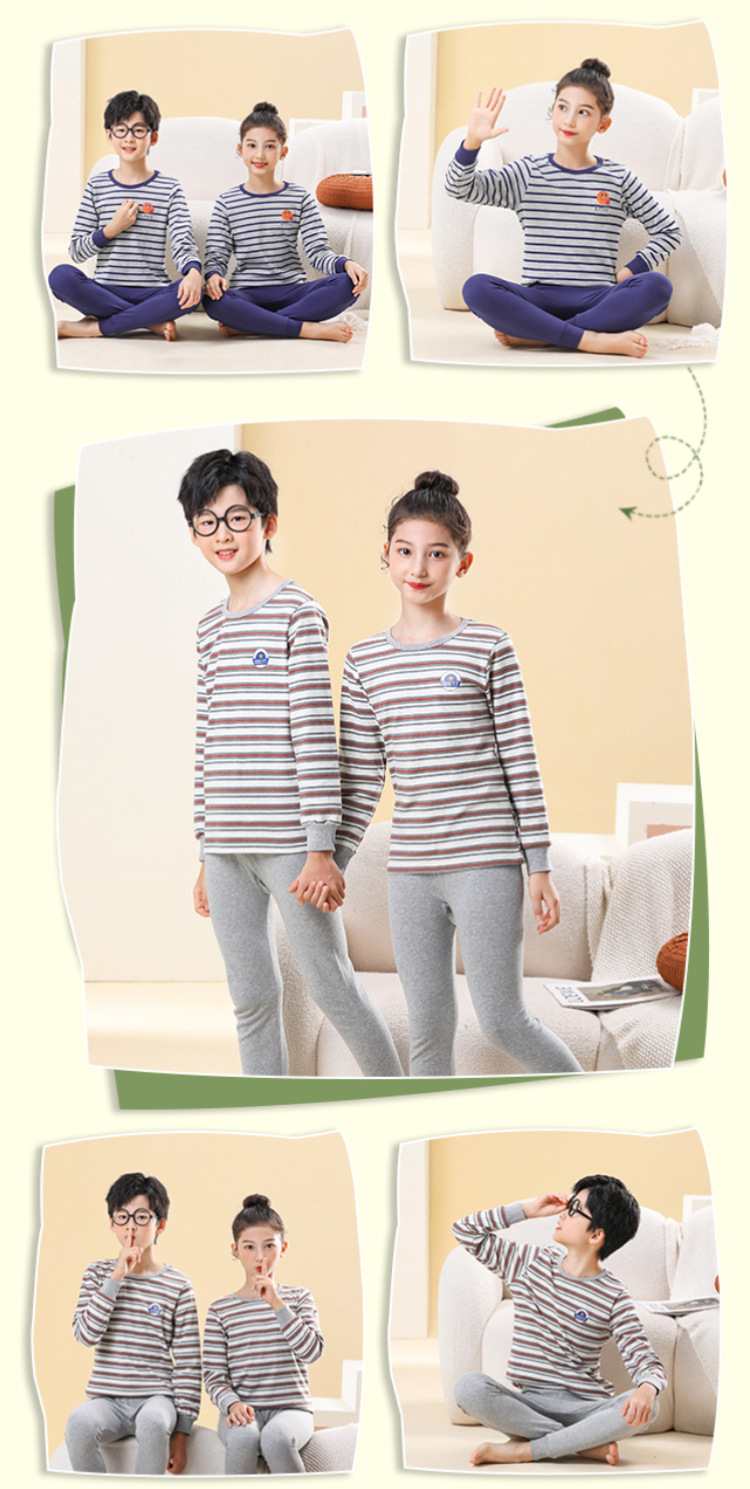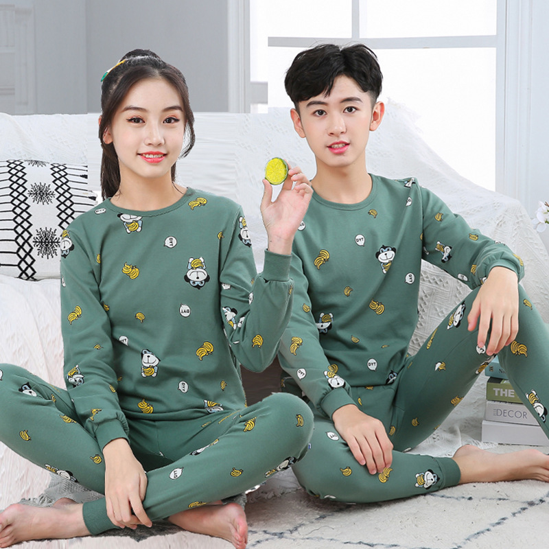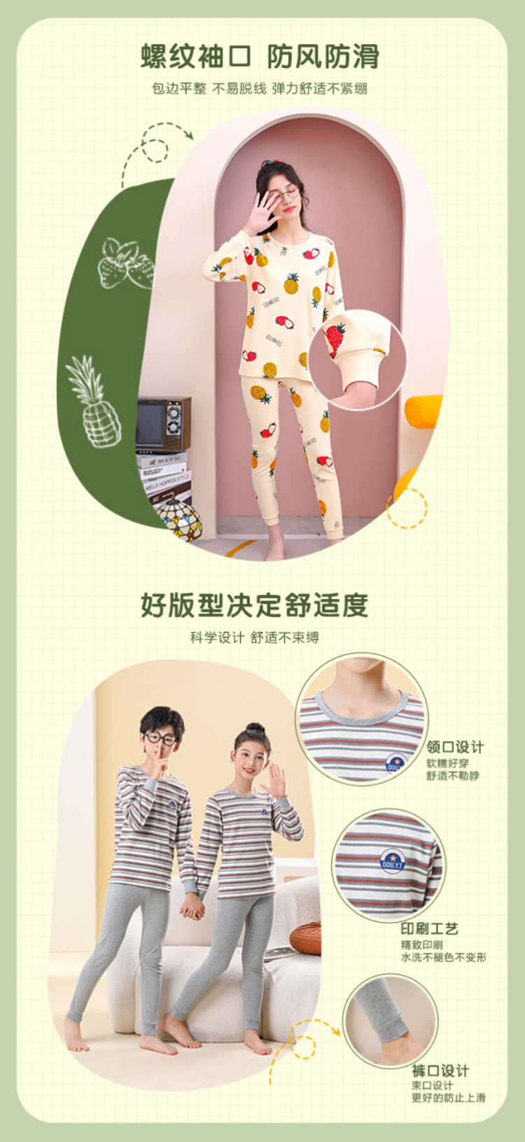 CUHK 아동 가정 의류 면 열 속옷 세트 라운드 넥 청소년 하의 잠옷 가을과 겨울 가을 옷 가을 바지