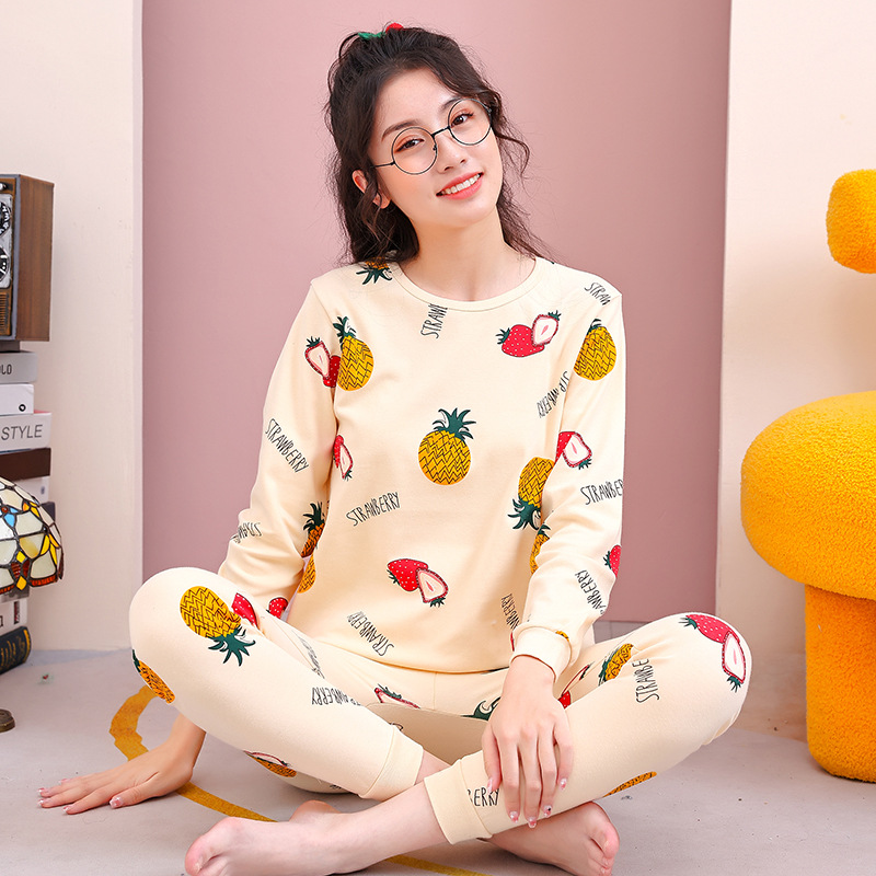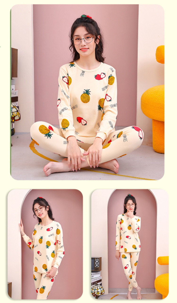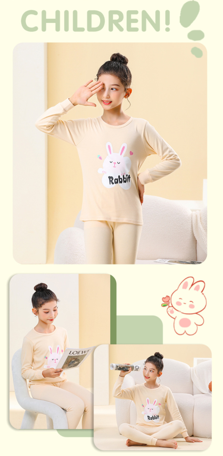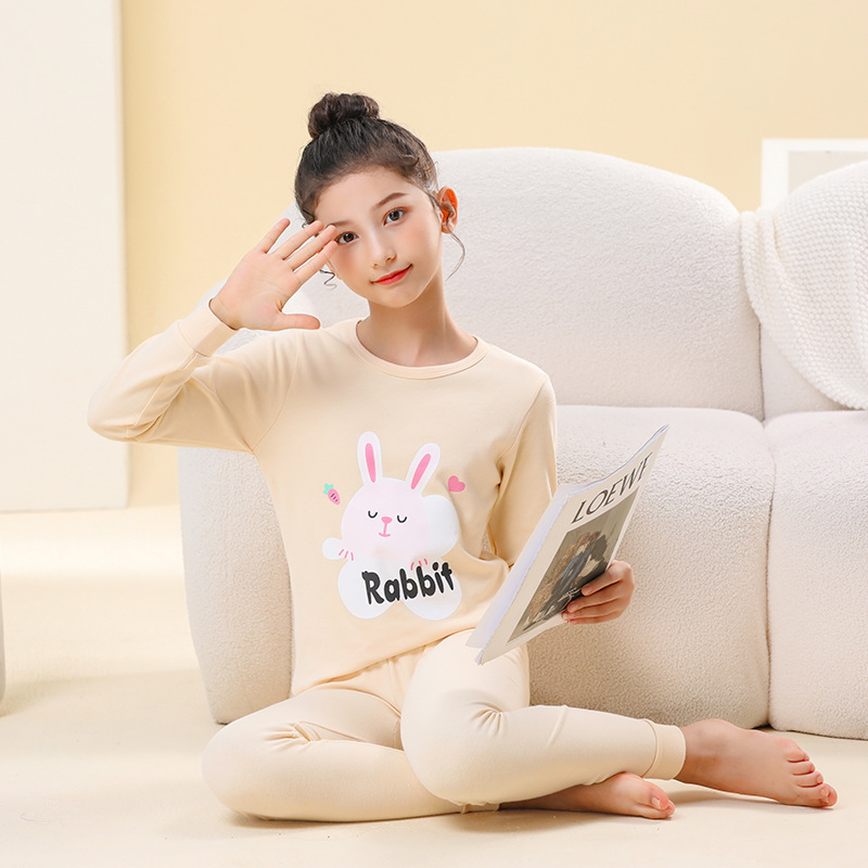 CUHK 아동 가정 의류 면 열 속옷 세트 라운드 넥 청소년 하의 잠옷 가을과 겨울 가을 옷 가을 바지