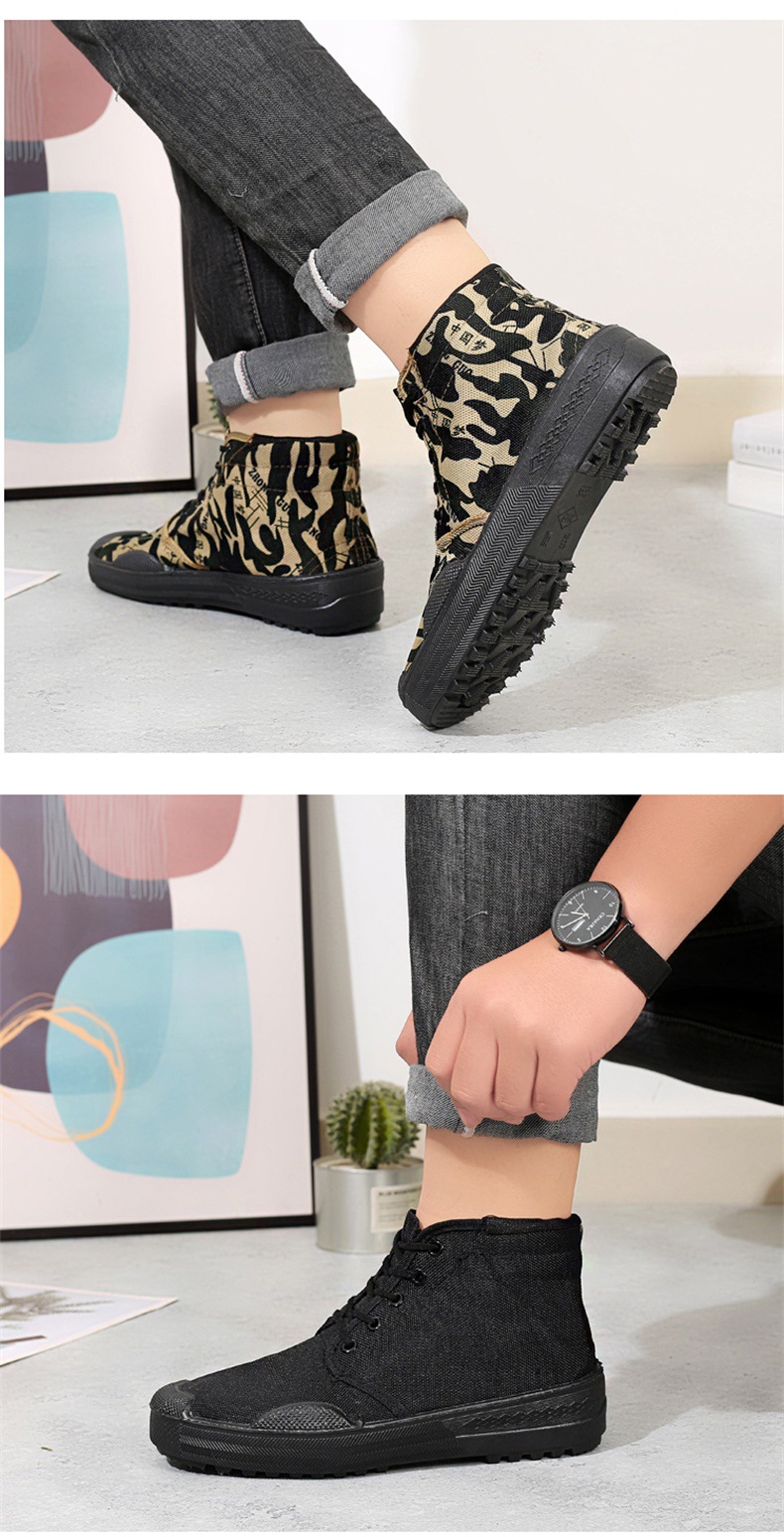 남성용 제국화 스타일 스노우 부츠, 미끄럼 방지 통기성 작업화, 노란색 고무신, 하이탑 위장 군사 훈련용 면 부츠, 등산 작업화스토어 가기