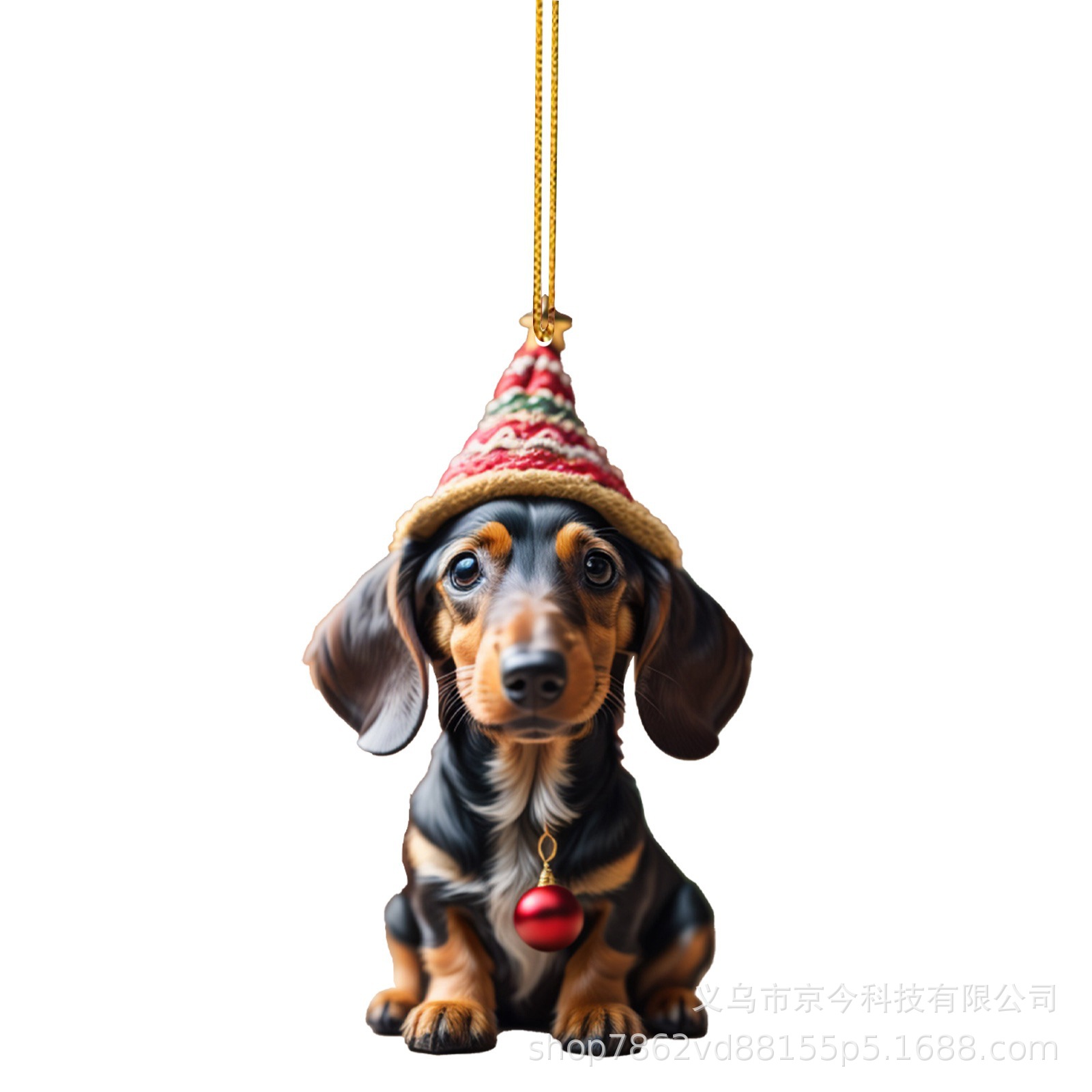 크로스 보더 새로운 크리스마스 재미 닥스 훈트 개 자동차 장식 펜던트 아크릴 플랫 자동차 인테리어 펜던트