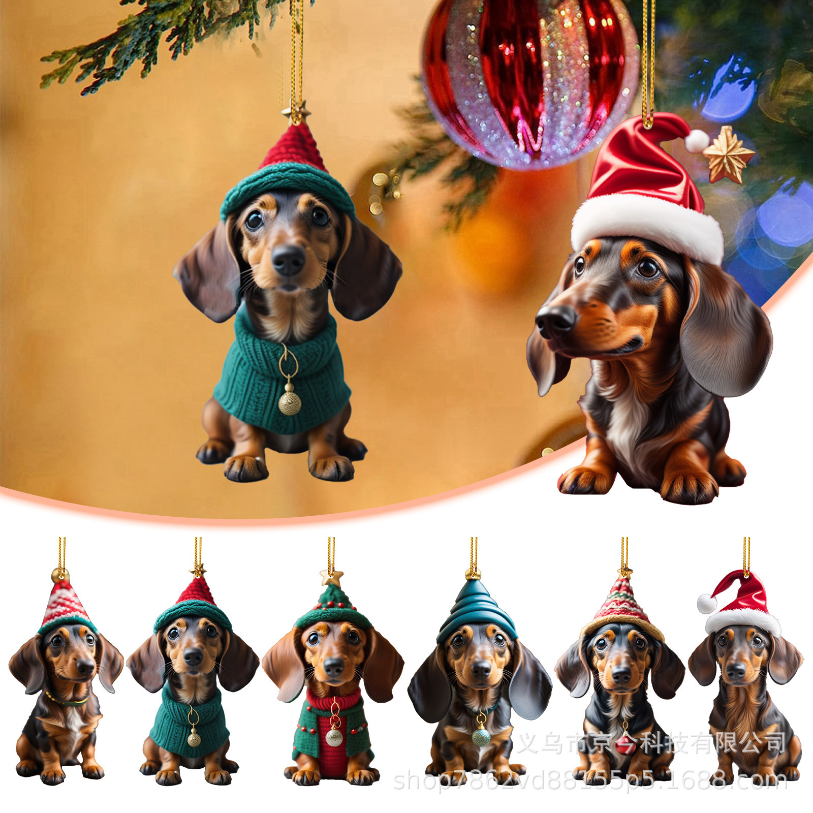 크로스 보더 새로운 크리스마스 재미 닥스 훈트 개 자동차 장식 펜던트 아크릴 플랫 자동차 인테리어 펜던트스토어 가기