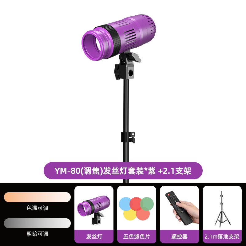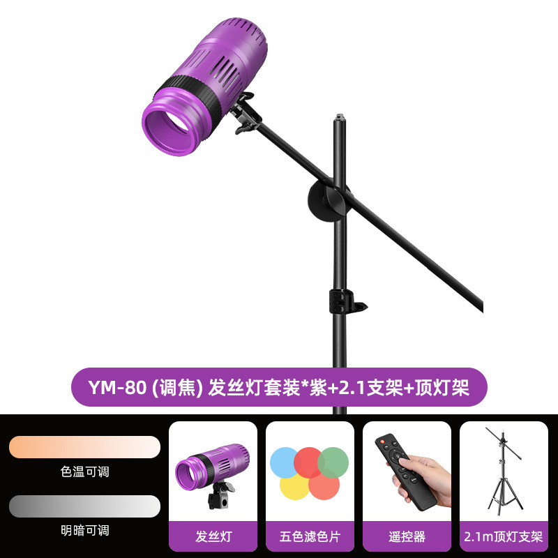 • 2.4G 리모콘 비코드 * YM-80 (포커싱) 헤어 램프 세트 * 보라색 + 2.1 브래킷