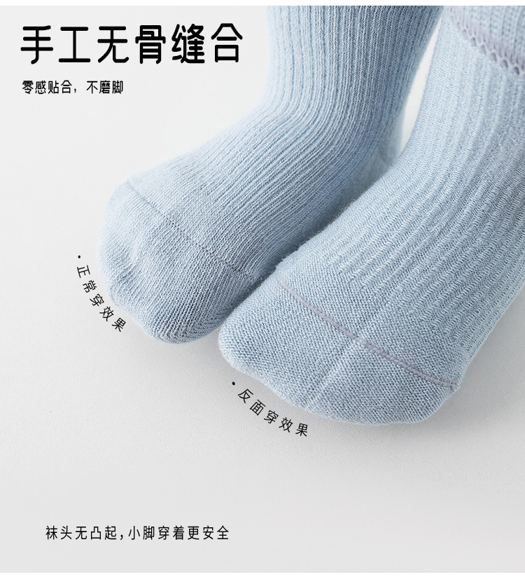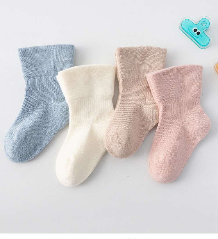 가을과 겨울 새로운 어린이 양말 따뜻한 아기 어린이 양말 단색 뼈없는 순면 느슨한 입 올 매치 아기 중간 튜브 양말스토어 가기