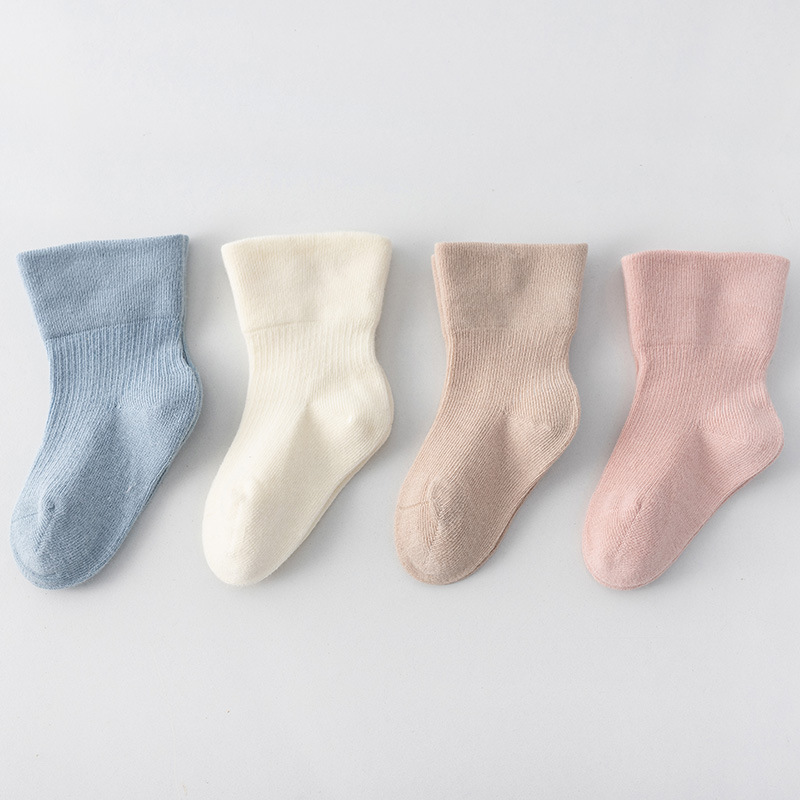 가을과 겨울 새로운 어린이 양말 따뜻한 아기 어린이 양말 단색 뼈없는 순면 느슨한 입 올 매치 아기 중간 튜브 양말