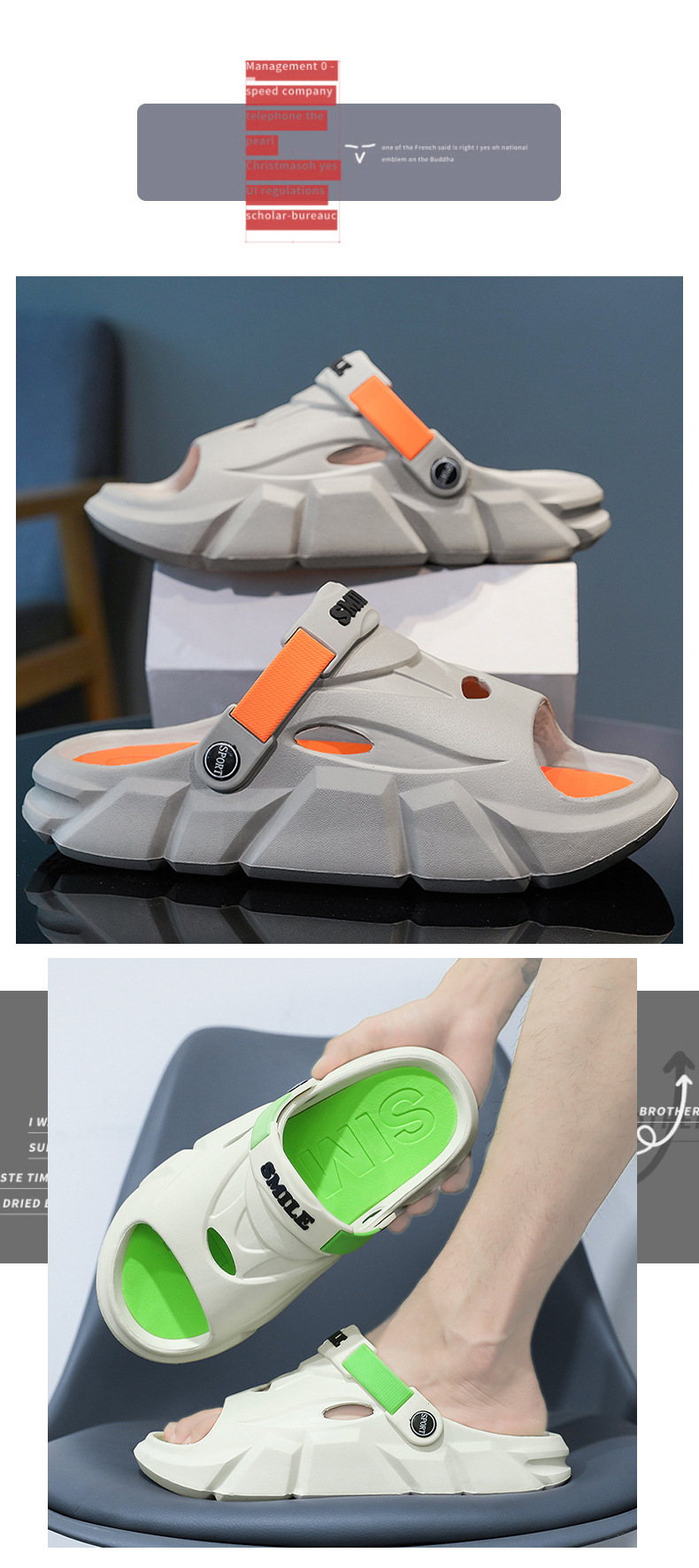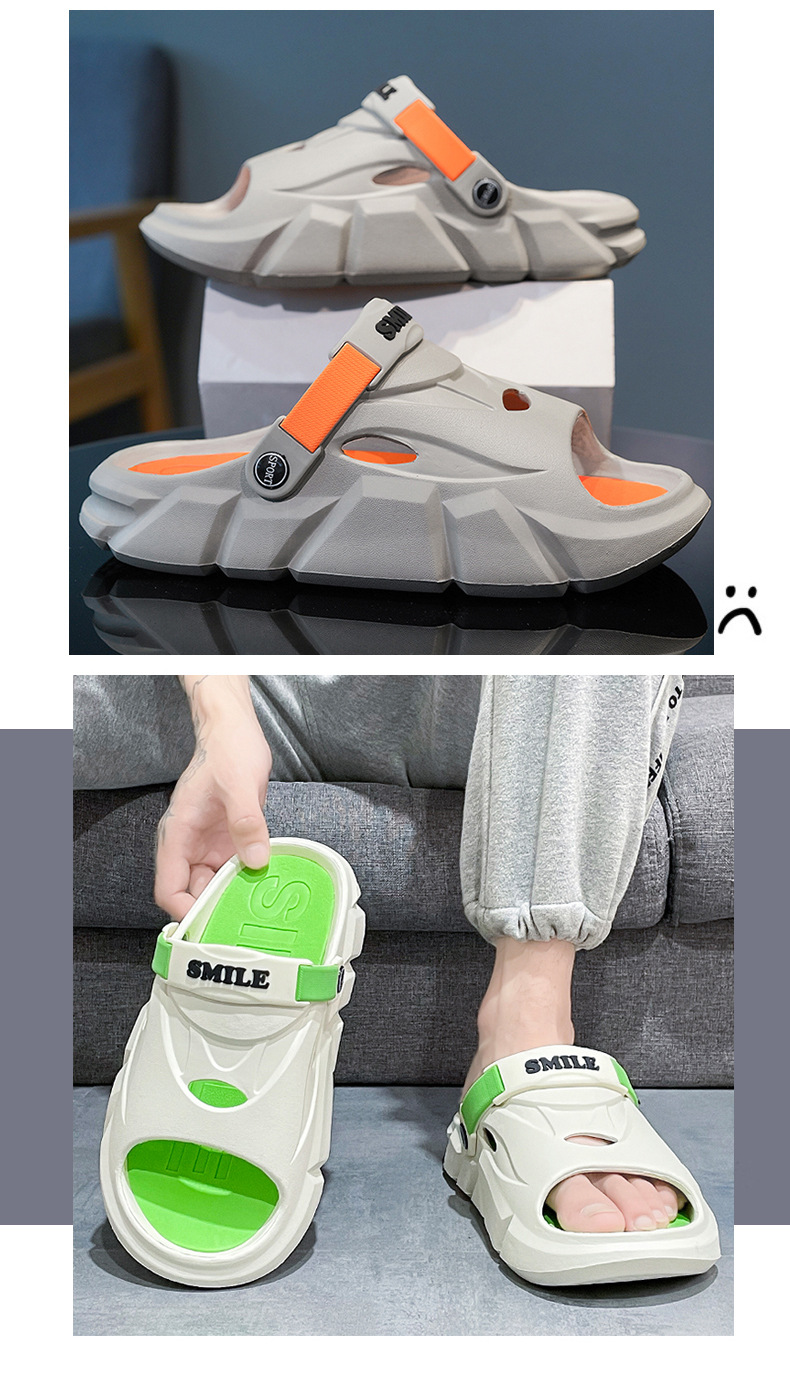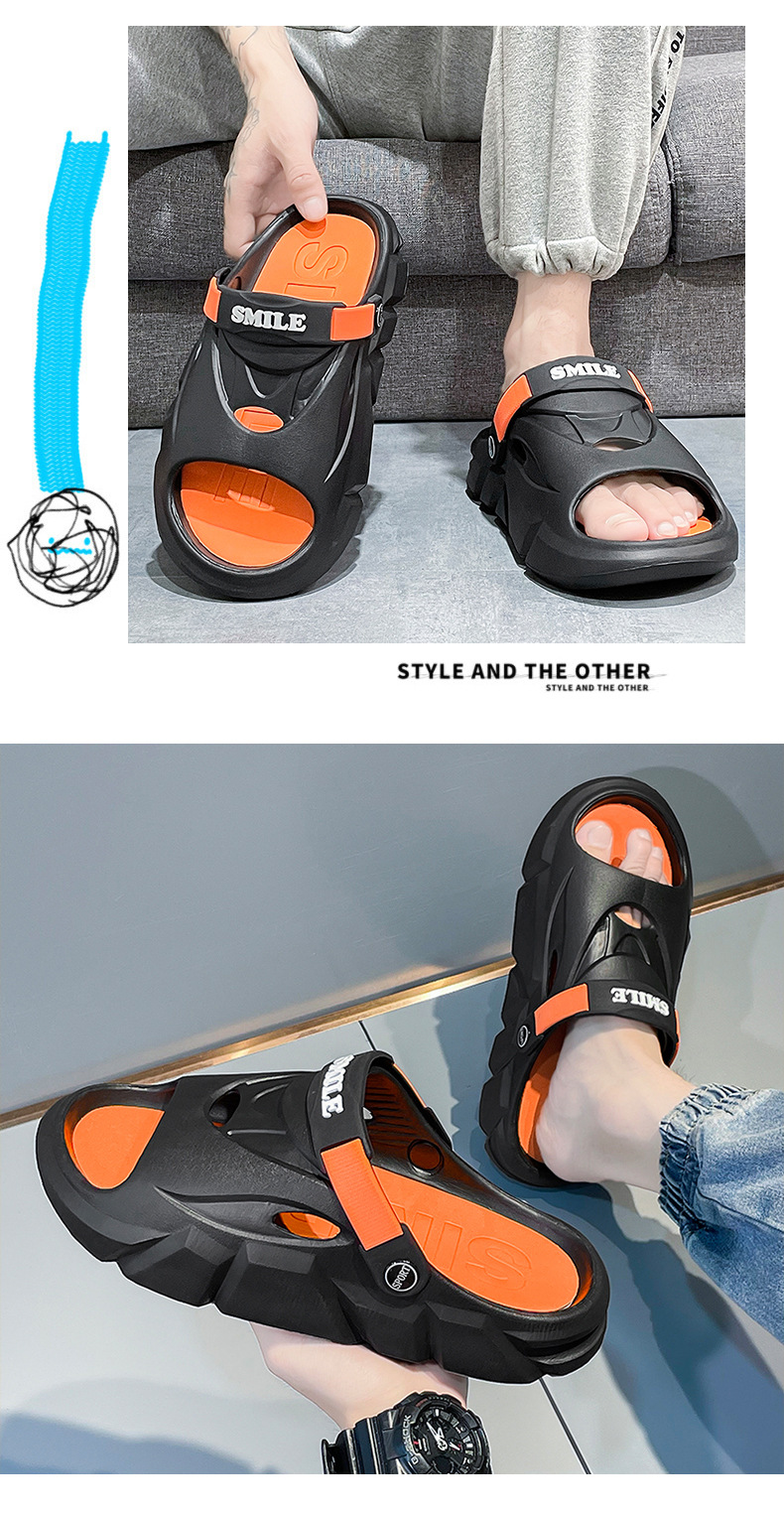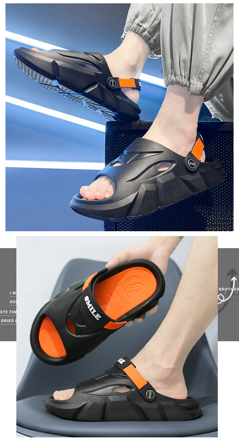 남성과 여성의 커플 슬리퍼 실내 및 실외 착용 이중 사용 미끄럼 방지 두꺼운 바닥 슬라이드 남성 여름 유행 스포츠 레저 샌들스토어 가기