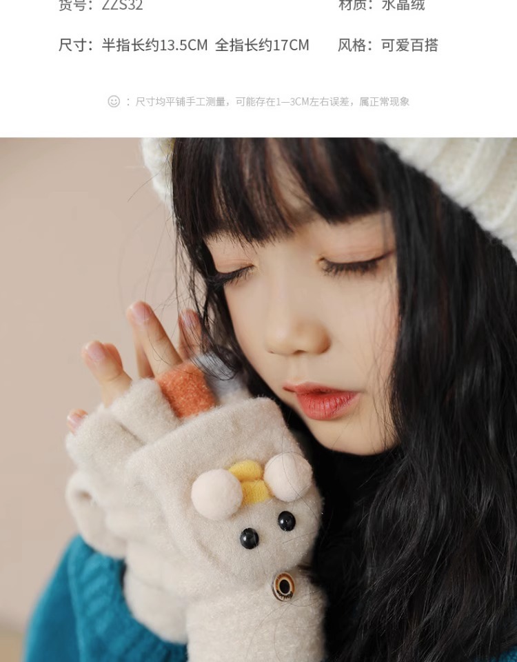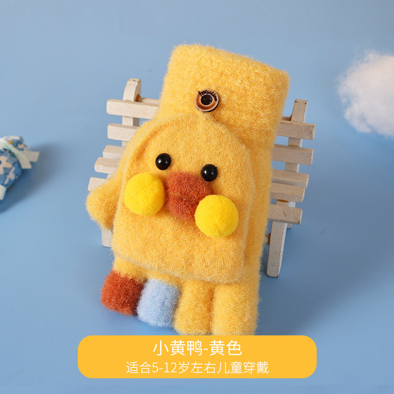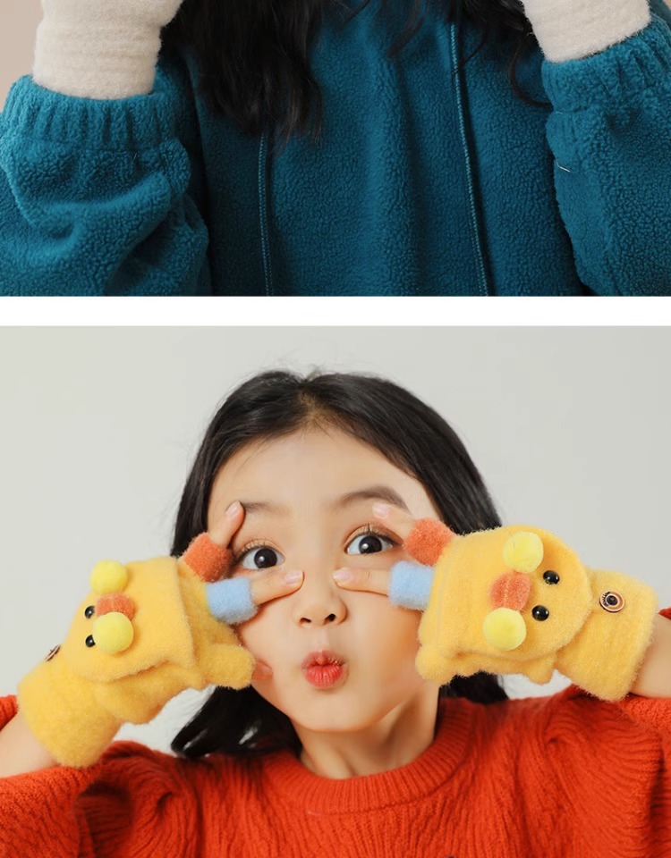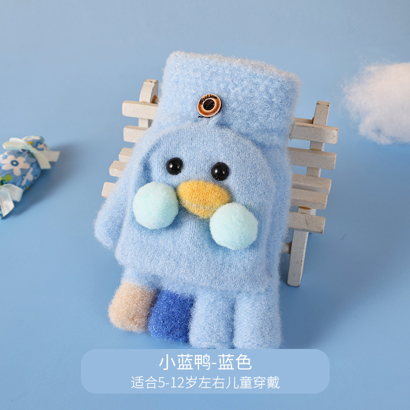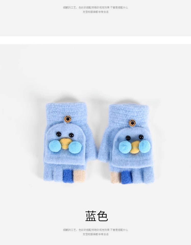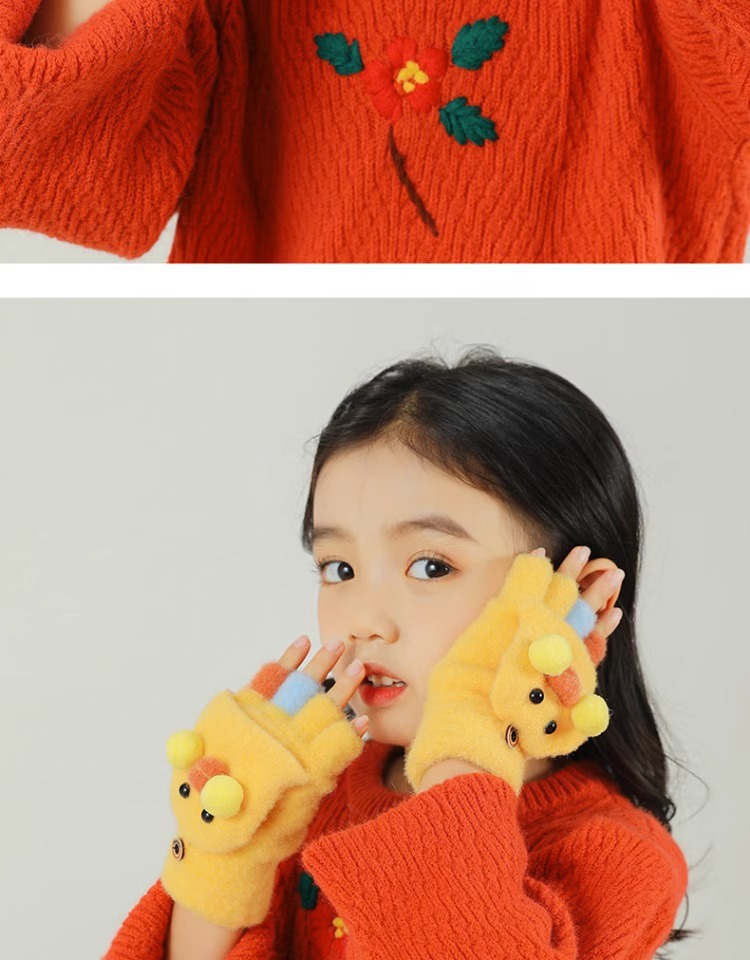 반 손가락 플립 장갑 겨울 플러스 벨벳 따뜻하고 내한성 만화 어린이 핑거리스 두꺼운 학생 쓰기 다섯 손가락 장갑스토어 가기