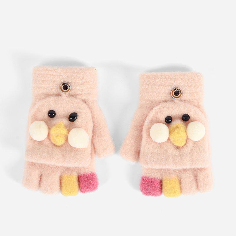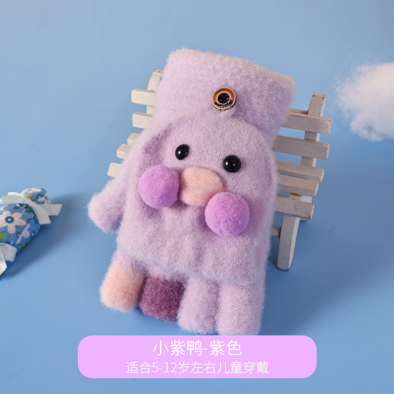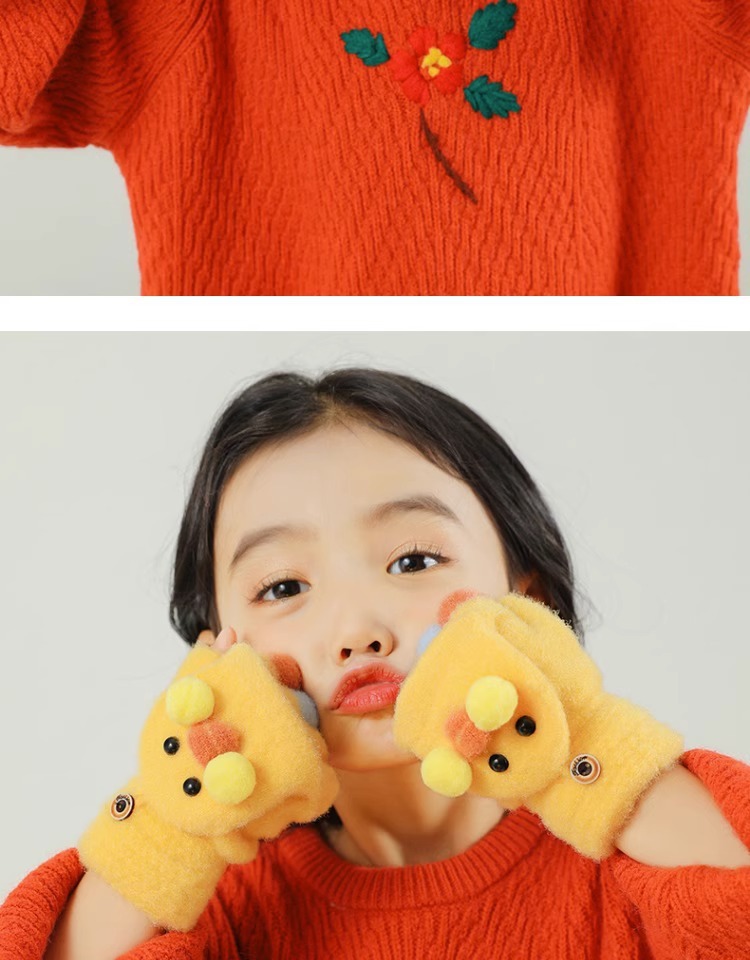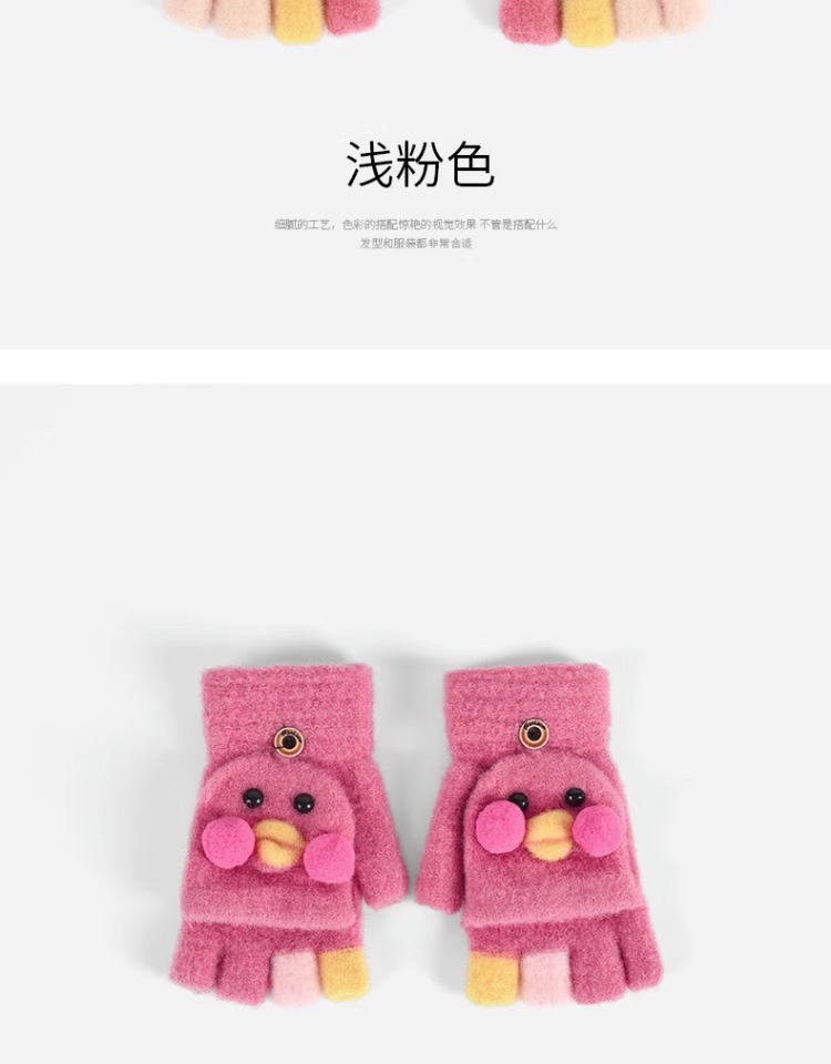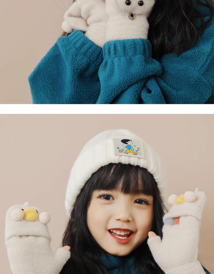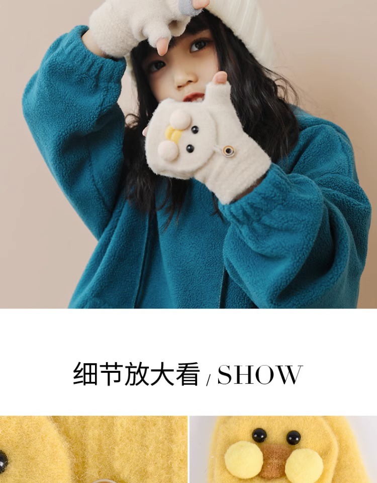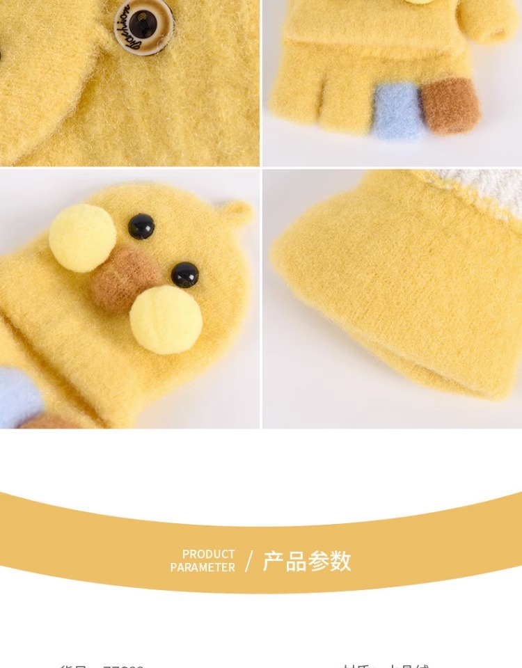 반 손가락 플립 장갑 겨울 플러스 벨벳 따뜻하고 내한성 만화 어린이 핑거리스 두꺼운 학생 쓰기 다섯 손가락 장갑스토어 가기
