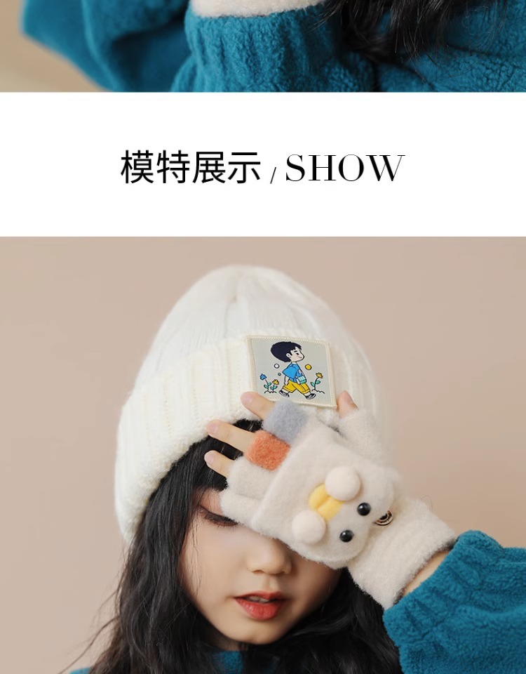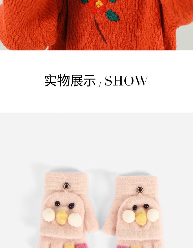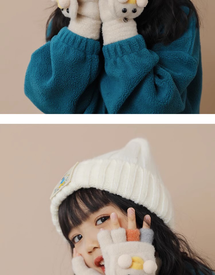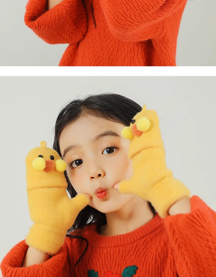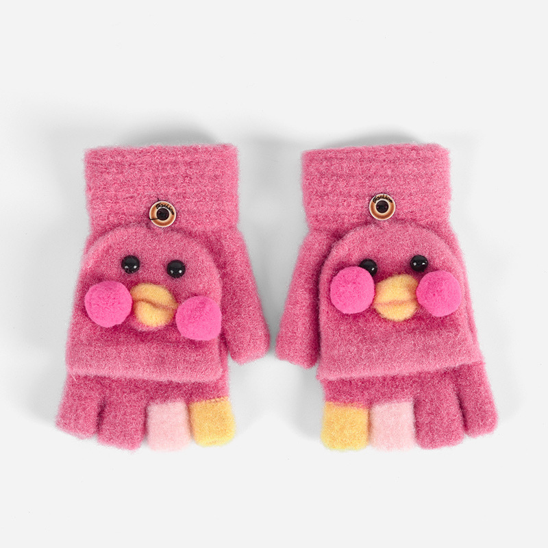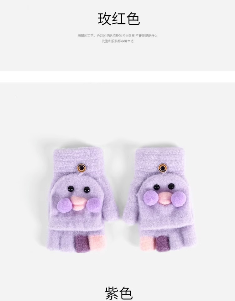 반 손가락 플립 장갑 겨울 플러스 벨벳 따뜻하고 내한성 만화 어린이 핑거리스 두꺼운 학생 쓰기 다섯 손가락 장갑스토어 가기