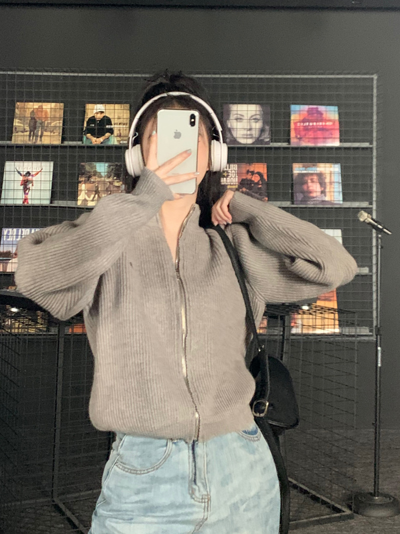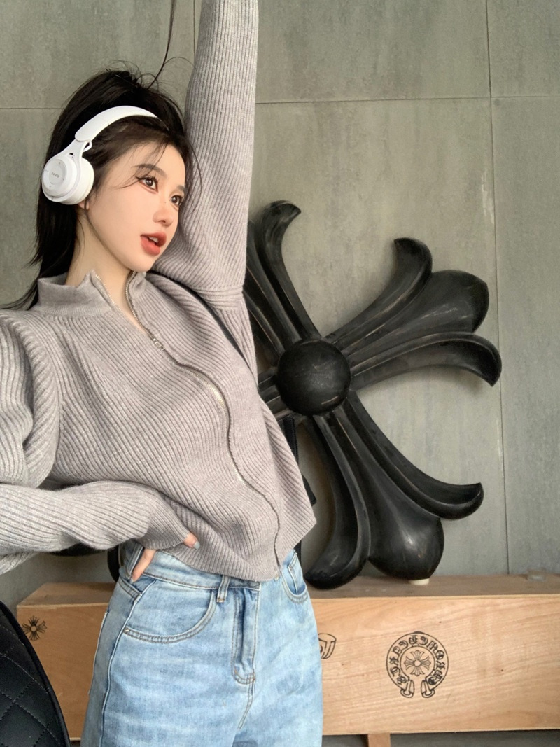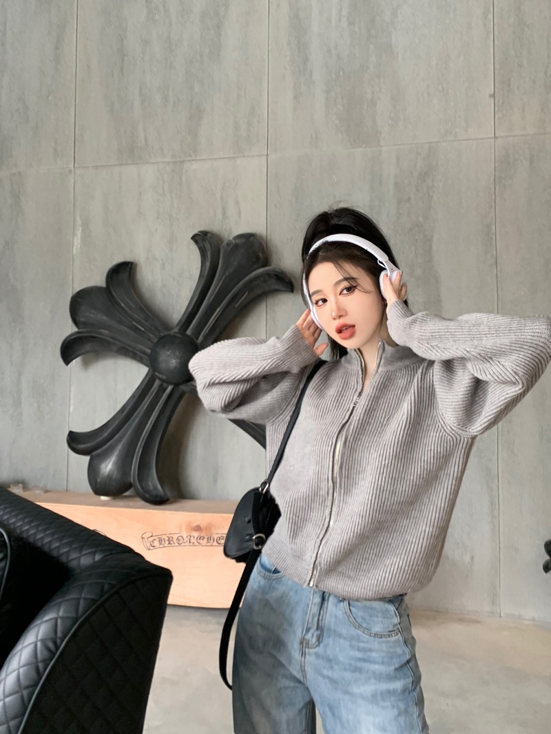 2772 # 틈새 스탠드 칼라 지퍼 니트 카디건 여성 가을과 겨울 심플 느슨한 짧은 다목적 코트 탑