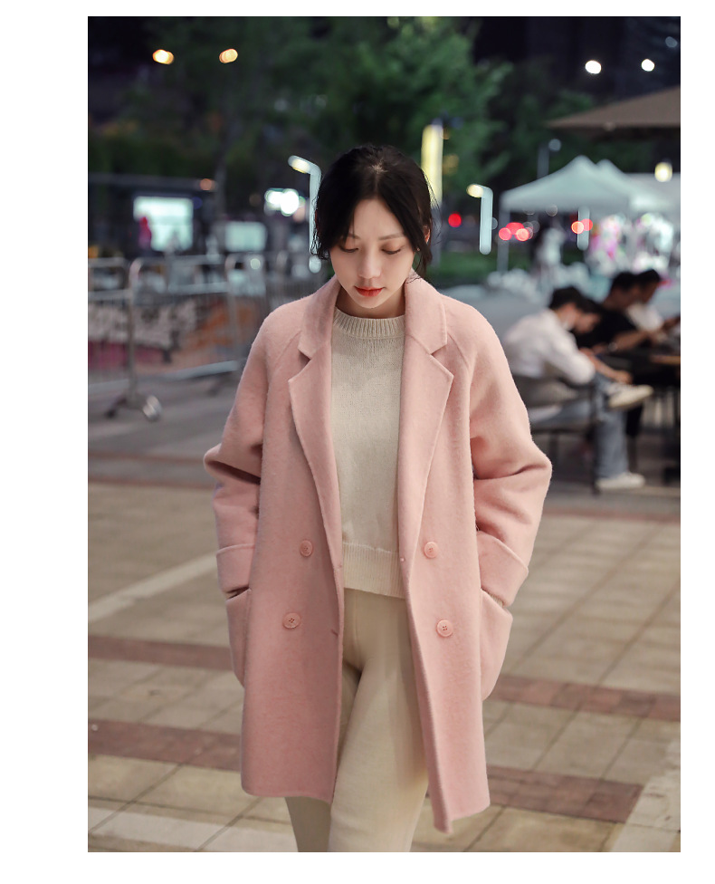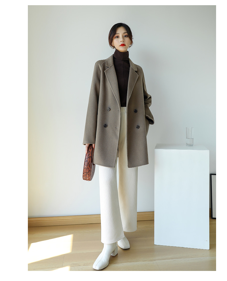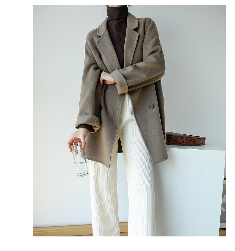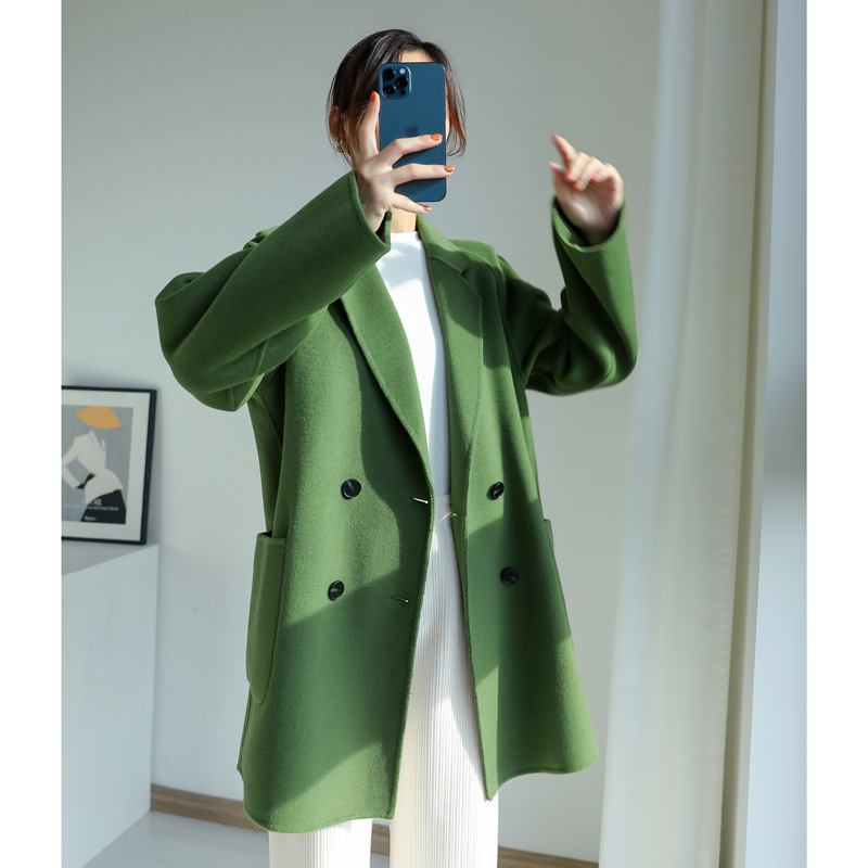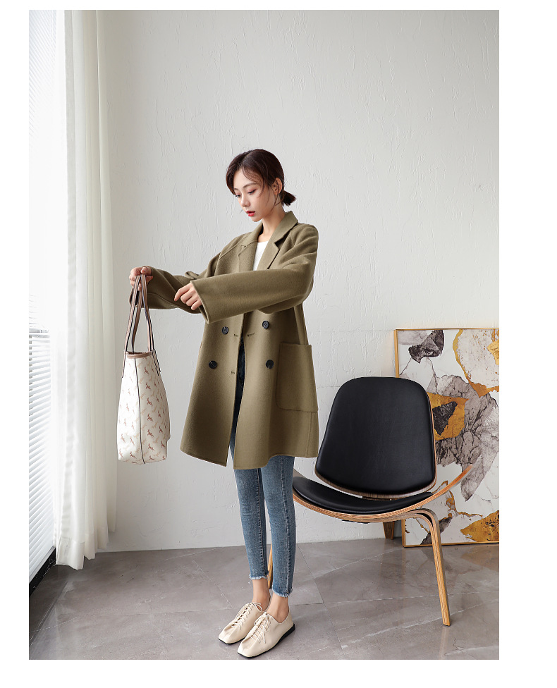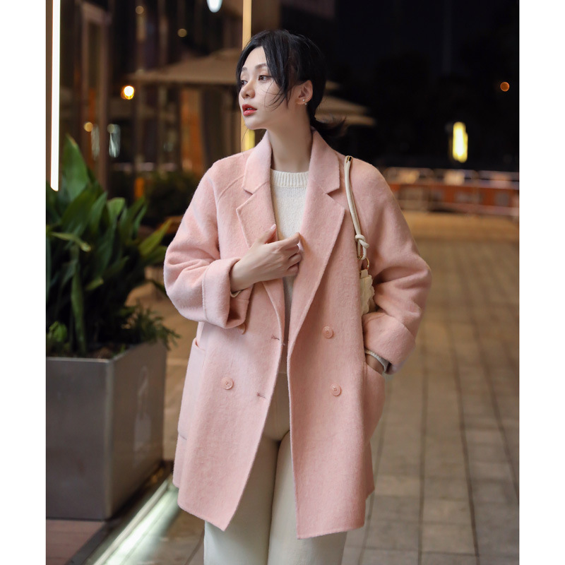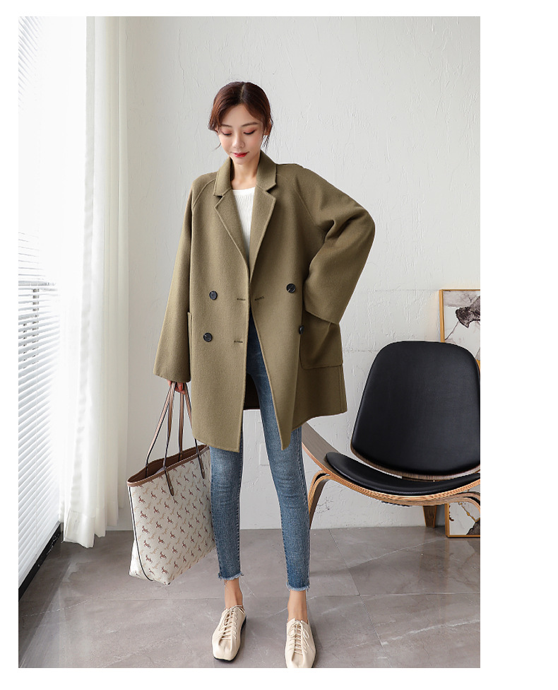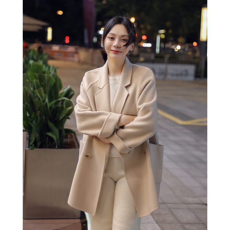 25 가을 겨울 신상 양면 모직 코트 여성용 한국 스타일 심플 미니 중간 길이 루즈핏 정장 모직 코트스토어 가기