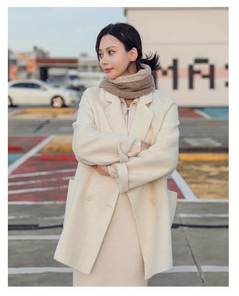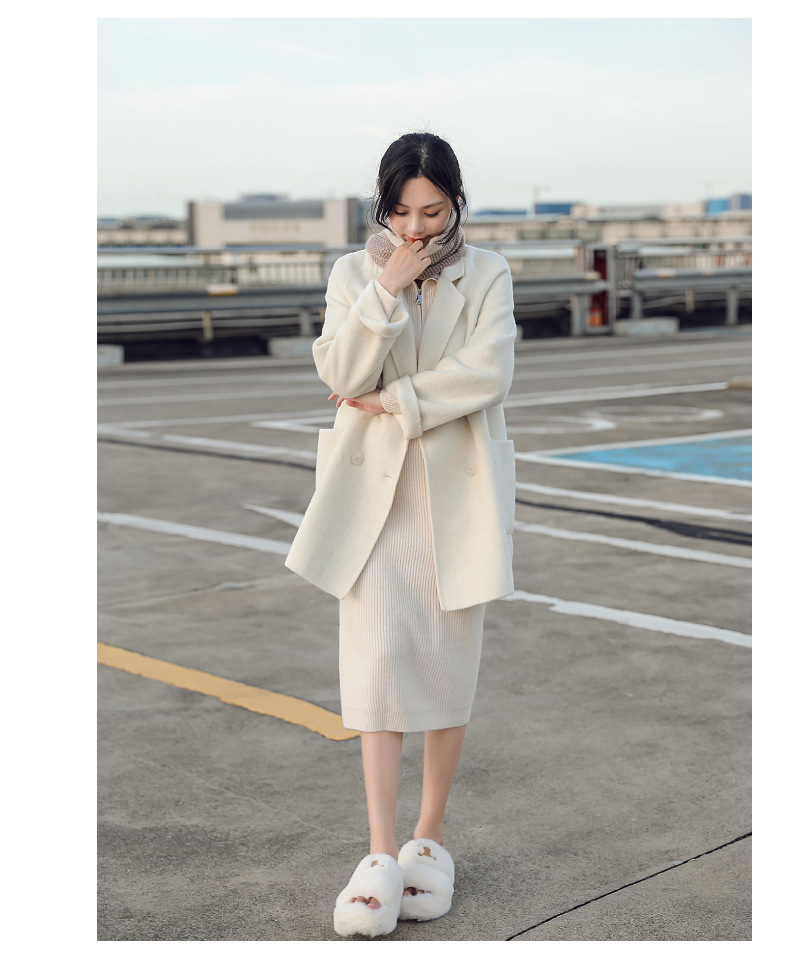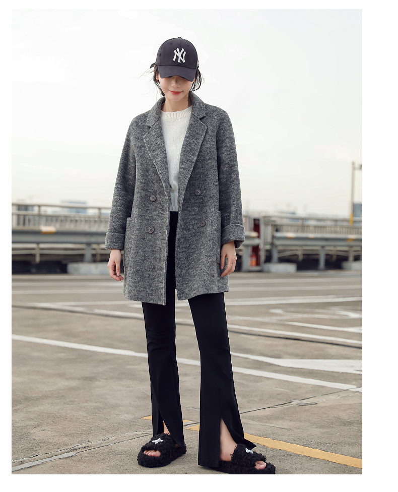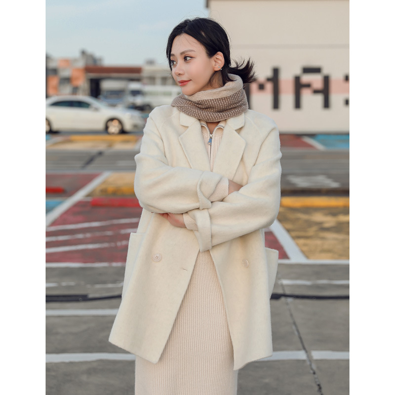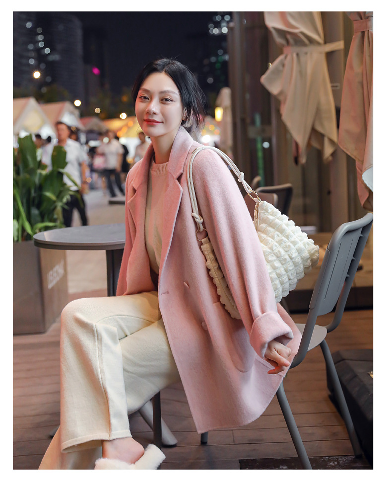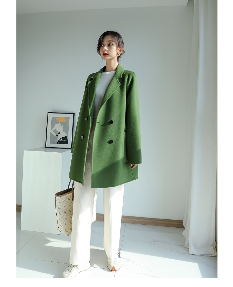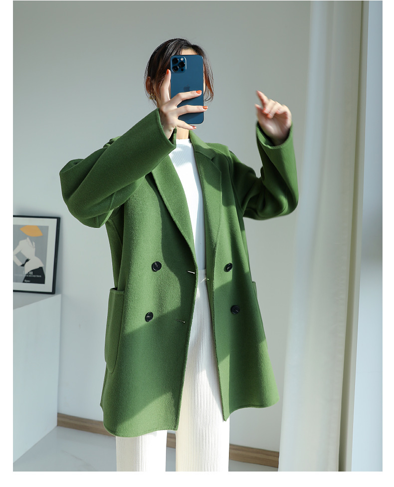 25 가을 겨울 신상 양면 모직 코트 여성용 한국 스타일 심플 미니 중간 길이 루즈핏 정장 모직 코트스토어 가기