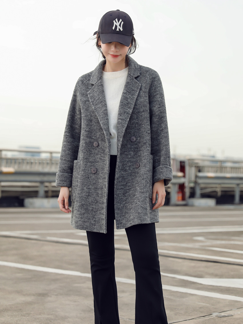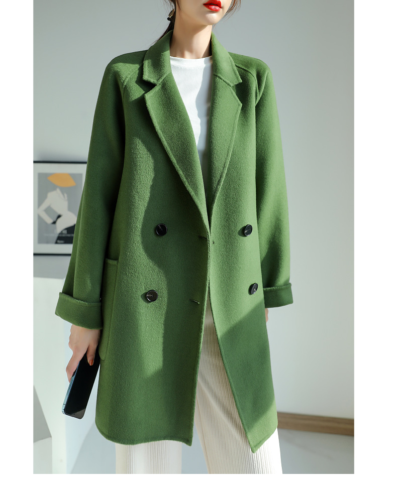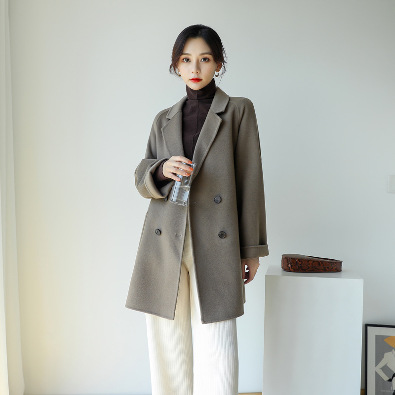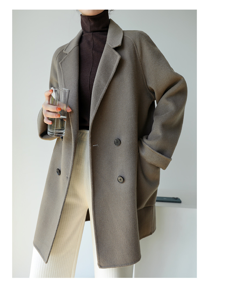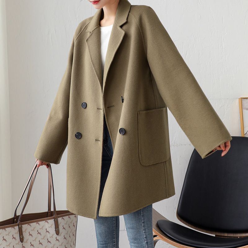 25 가을 겨울 신상 양면 모직 코트 여성용 한국 스타일 심플 미니 중간 길이 루즈핏 정장 모직 코트