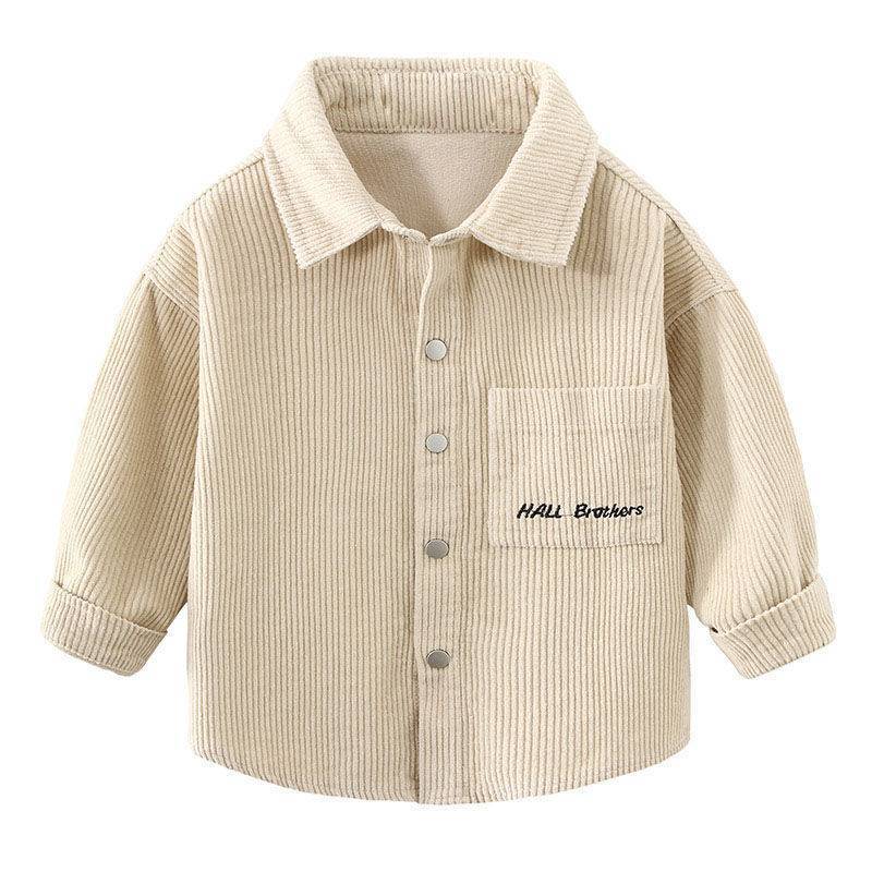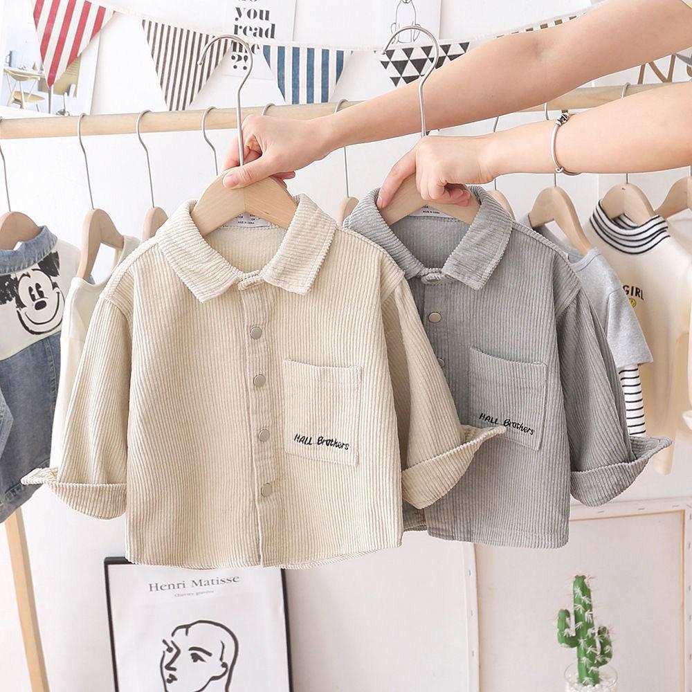 남아 긴 소매 셔츠 세련된 봄과 가을 한국 스타일 탄성 셔츠 아기 셔츠 코듀로이 탑 대비 컬러 셔츠스토어 가기