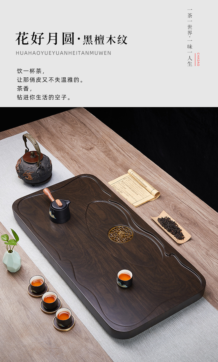 흑단 티 트레이 단단한 나무 가정용 거실 배수 트레이 새로운 모조 로그 간단한 새로운 쿵푸 차 테이블 차 바다스토어 가기