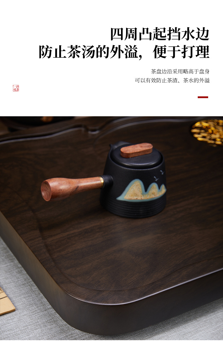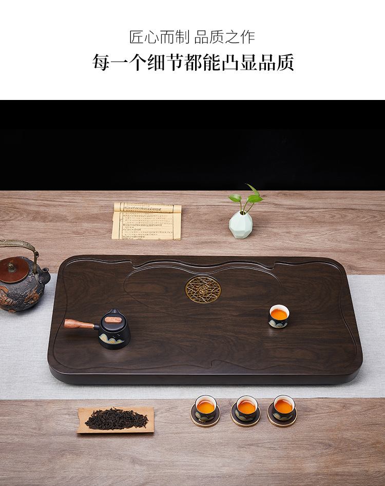 흑단 티 트레이 단단한 나무 가정용 거실 배수 트레이 새로운 모조 로그 간단한 새로운 쿵푸 차 테이블 차 바다