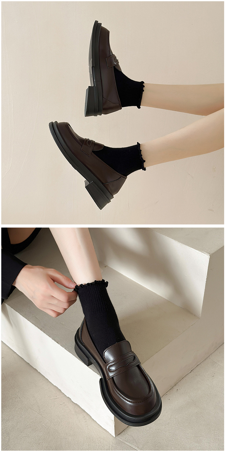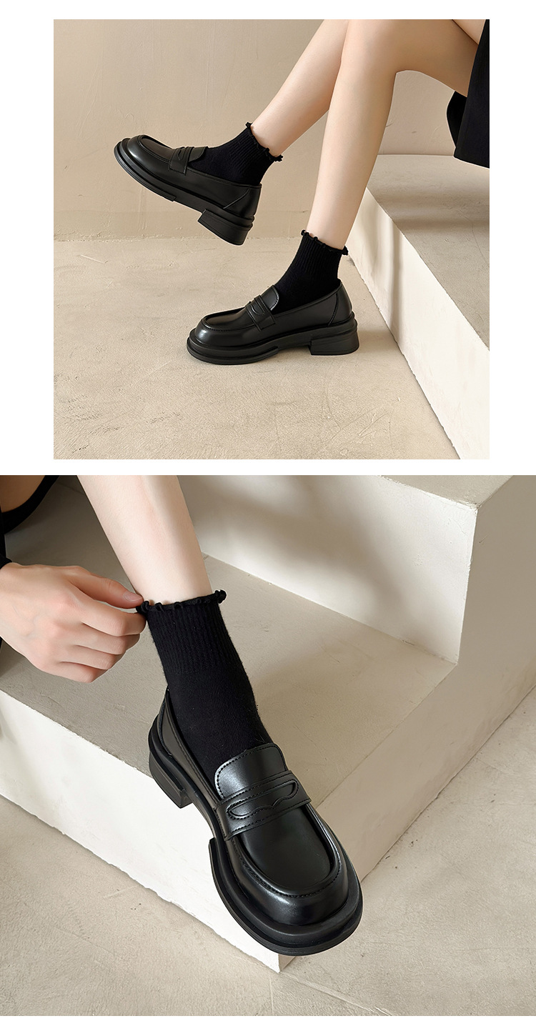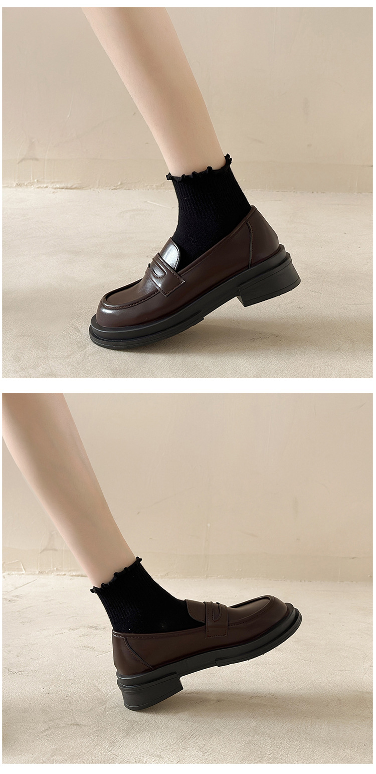 영국 스타일 두꺼운 밑창 가죽 로퍼 여성용 2025 봄 신상 슬립온 부드러운 밑창 메리제인 슈즈스토어 가기