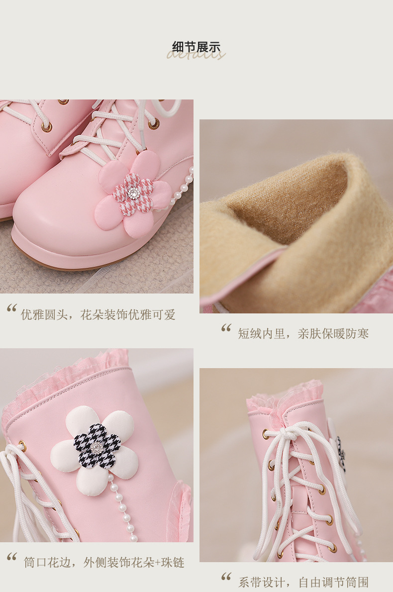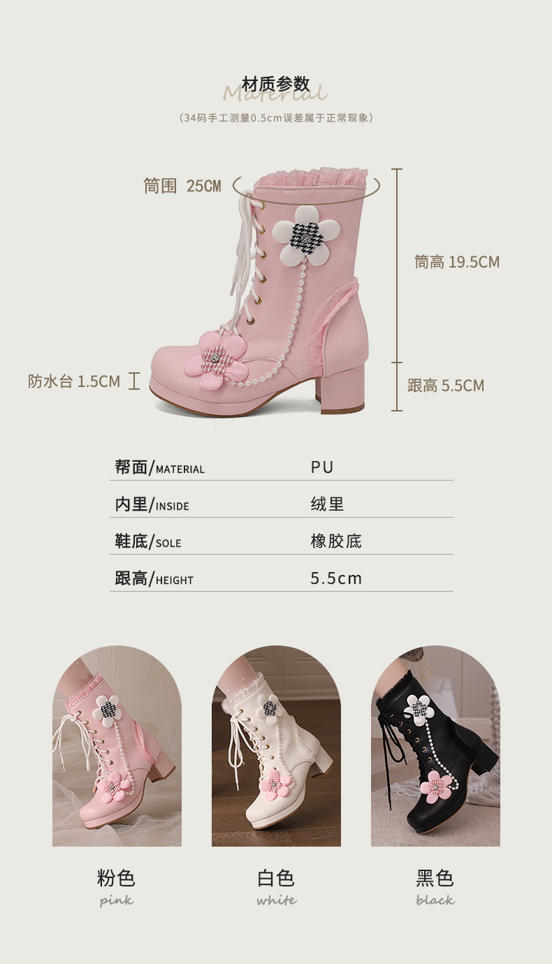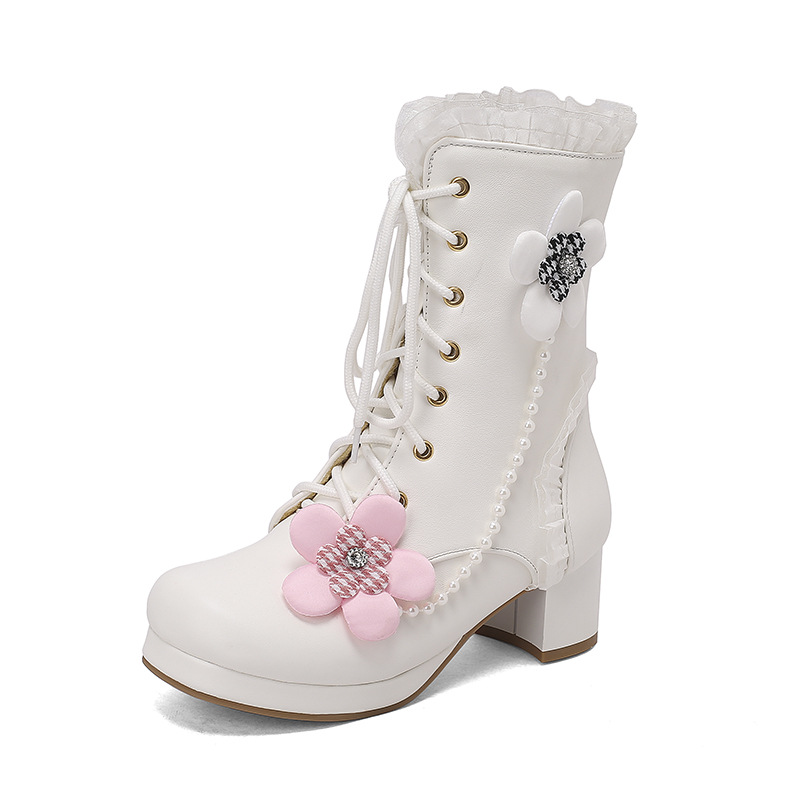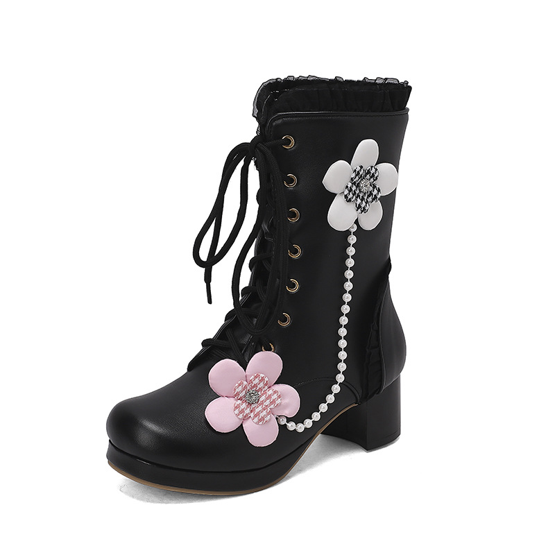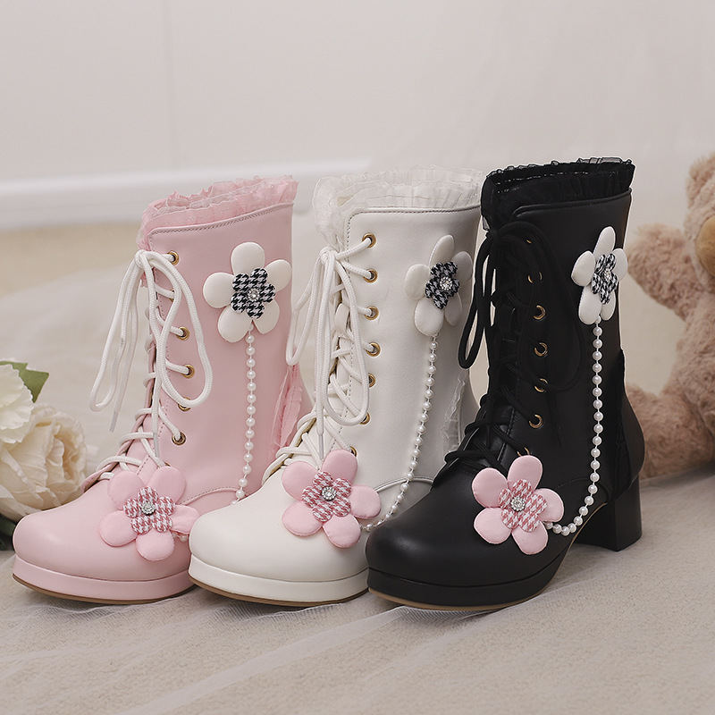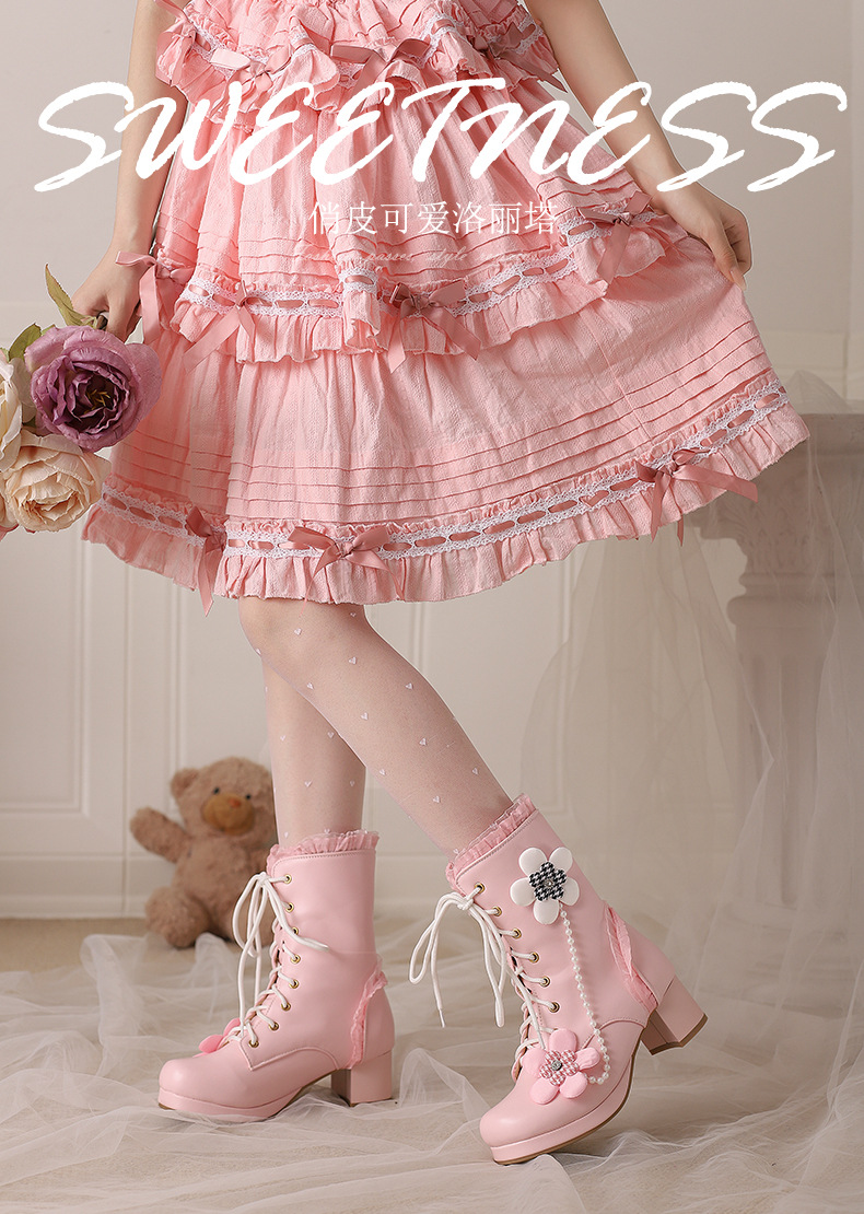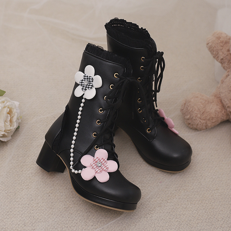 달콤한 꽃 레이스 가장자리 캔디 신발 공주 가죽 부츠 페르시 레이스 업 마틴 부츠 앵클 부츠 두꺼운 미드 힐 해외 무역 부츠스토어 가기