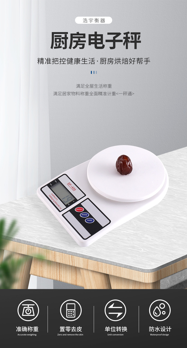 SF400 주방 전자 저울 작은 음식 베이킹 약품 보석 무게 그램 선물 도매 고정밀스토어 가기