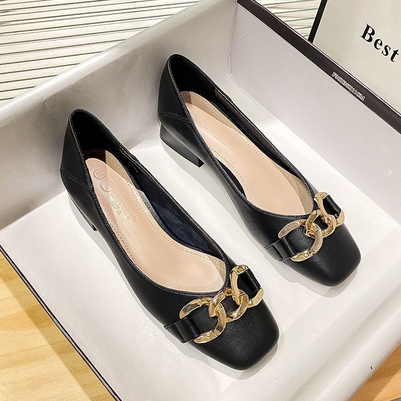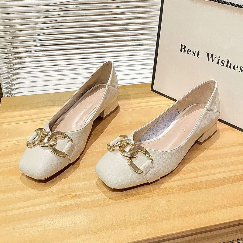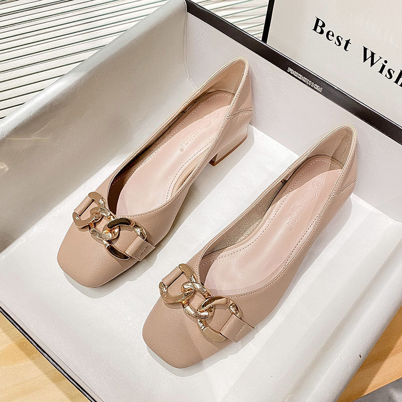 진짜 부드러운 가죽 여성화, 봄 가을 굽이 두꺼운 2025년 신상 중간 굽 두부슈즈, 여성 가죽화, 워크슈즈, 부드러운 밑창 여성 싱글 슈즈스토어 가기