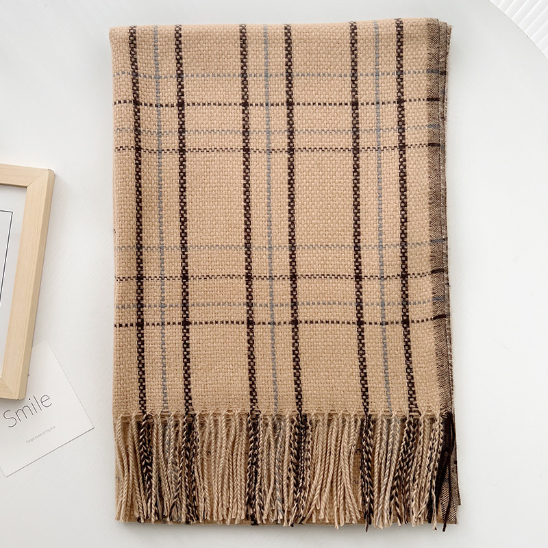클래식 예술적 샤넬 스타일 격자 무늬 스카프 여성의 가을과 겨울 모조 캐시미어 한국 스타일 모든 매치 스카프 고급 보온 숄