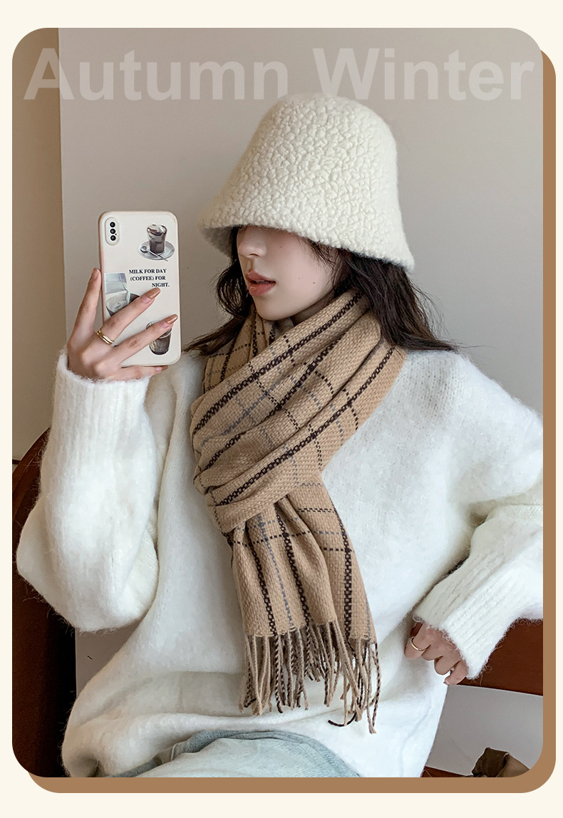 클래식 예술적 샤넬 스타일 격자 무늬 스카프 여성의 가을과 겨울 모조 캐시미어 한국 스타일 모든 매치 스카프 고급 보온 숄스토어 가기