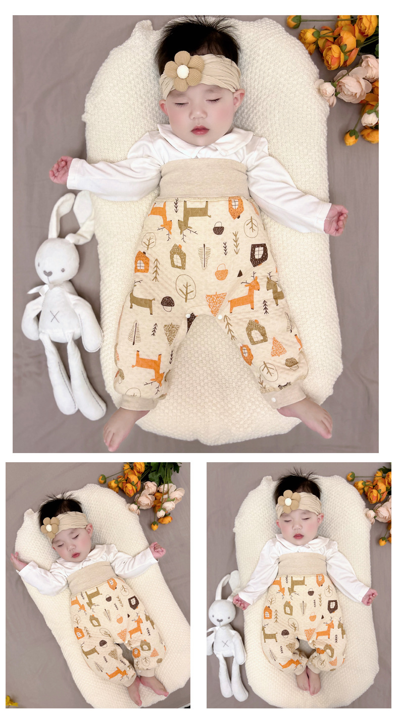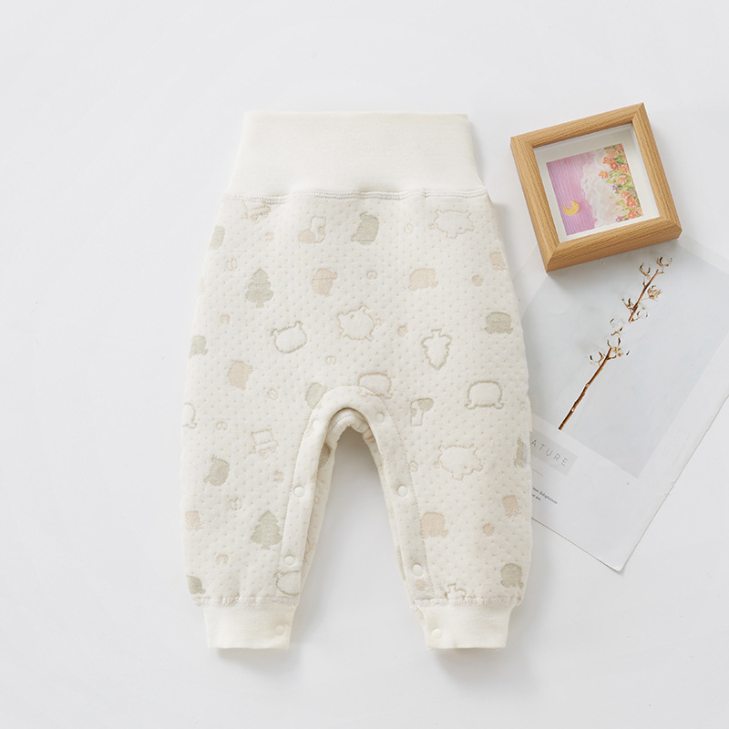 아기의 하이 웨이스트 배 보호 바지 숨겨진 버클이있는 소년과 소녀를위한 아기의 가을과 겨울 따뜻한 레깅스 대형 PP 신생아 바지