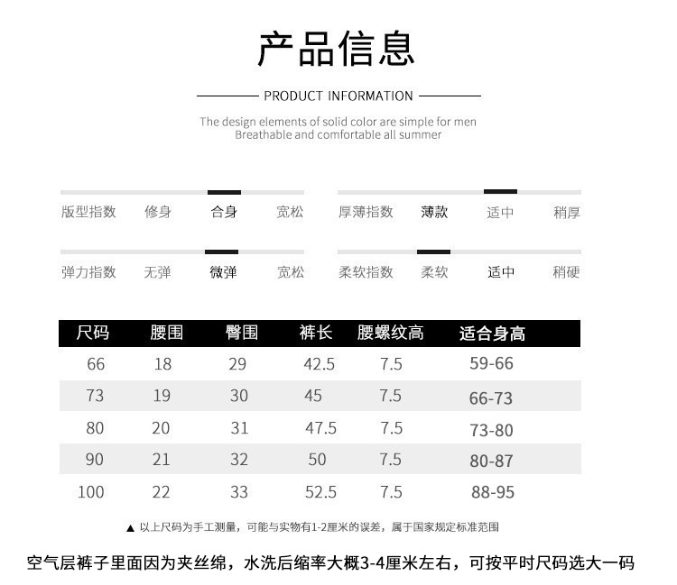 空气层裤子里面因为夹丝绵洗后缩率大概3-4厘米左右
