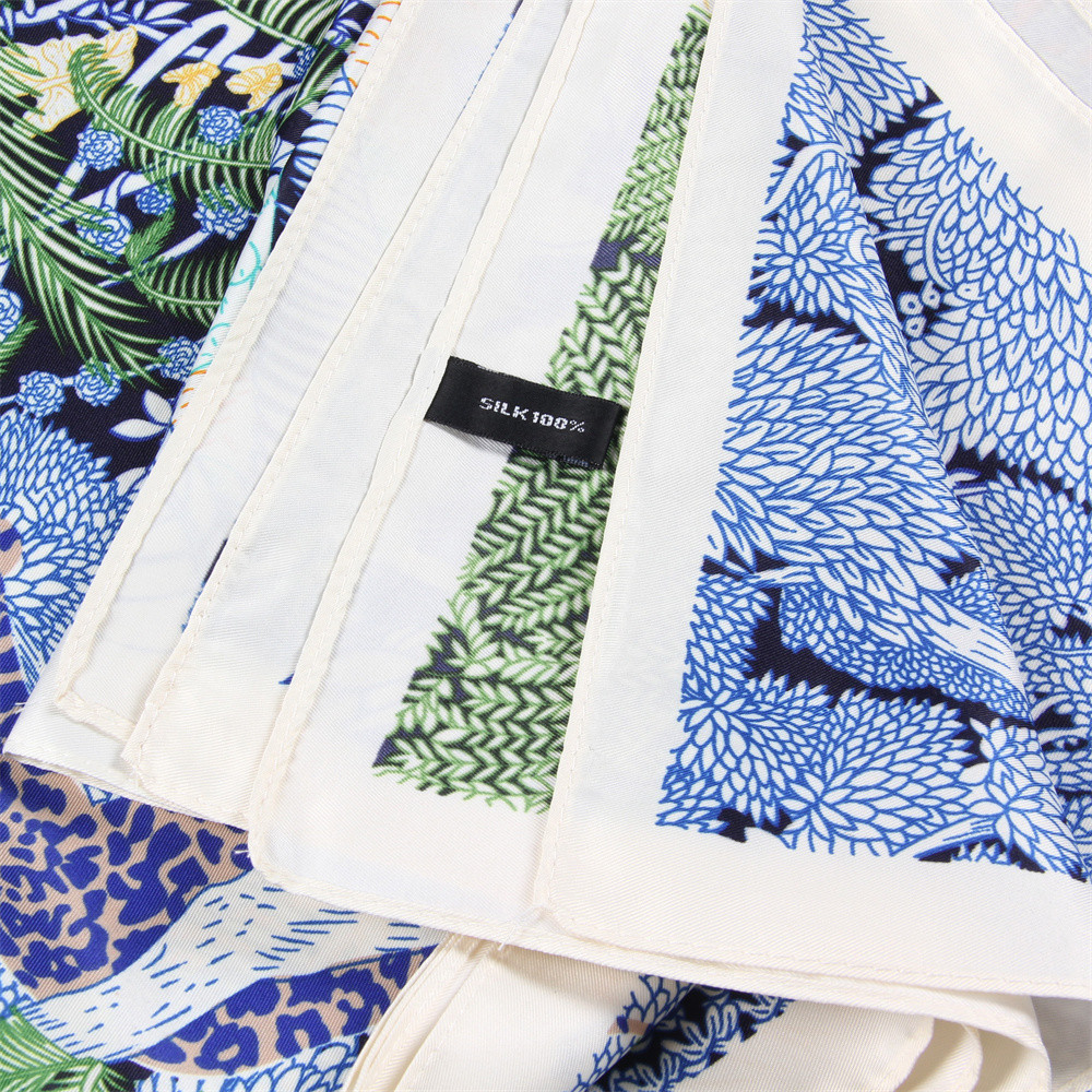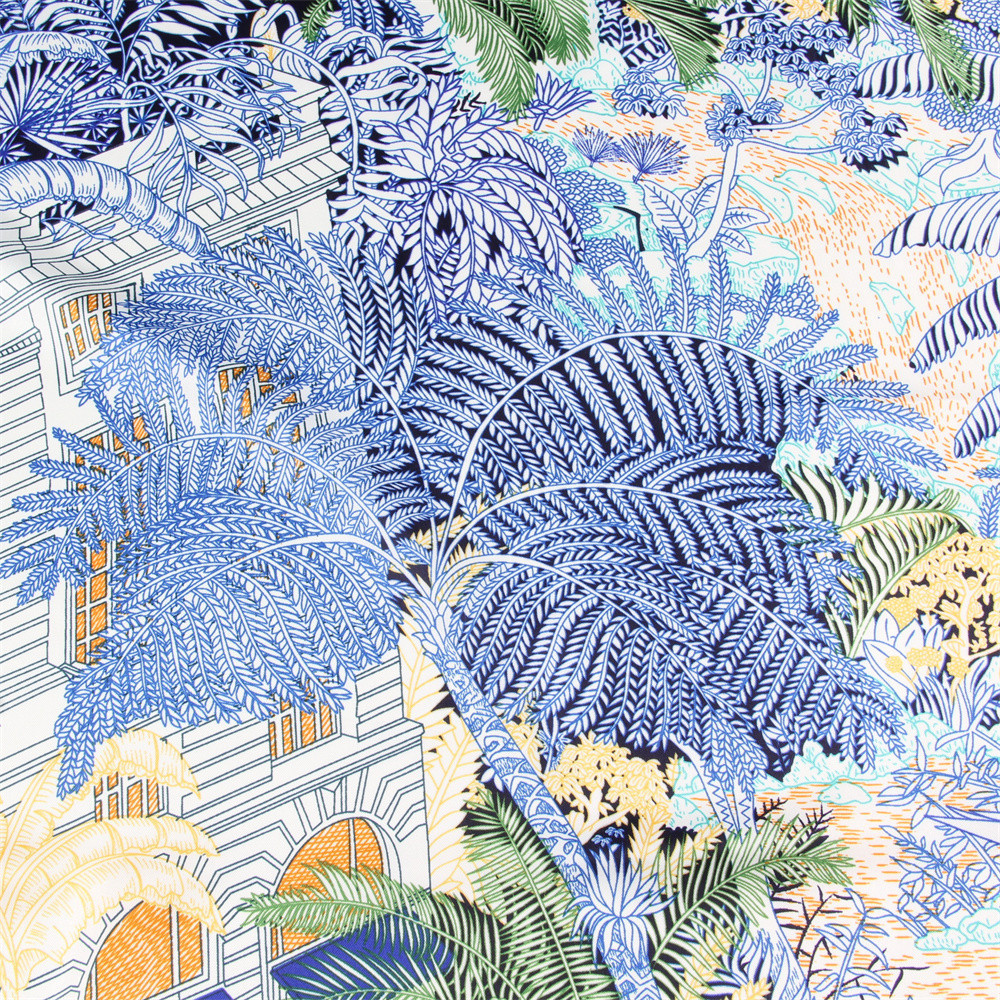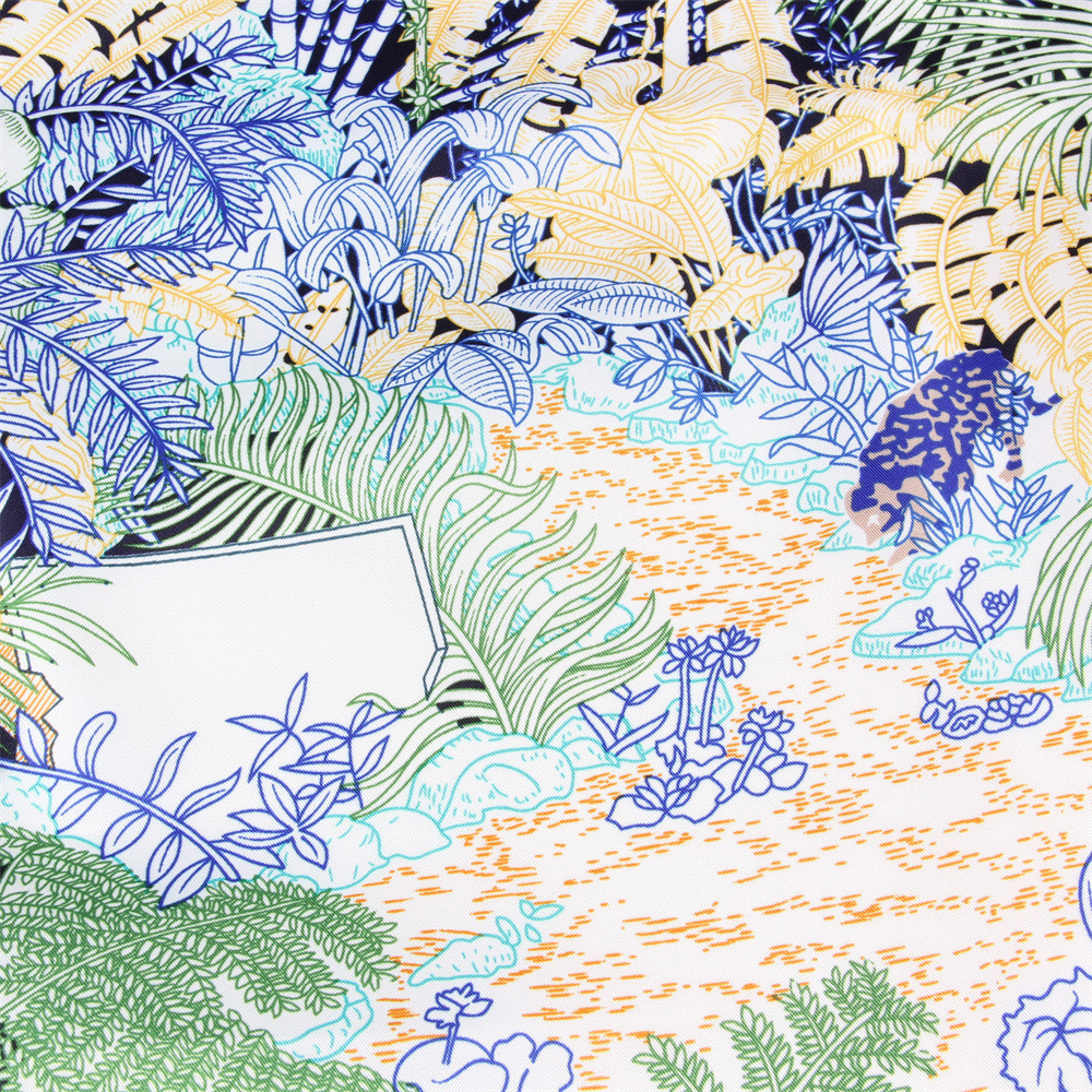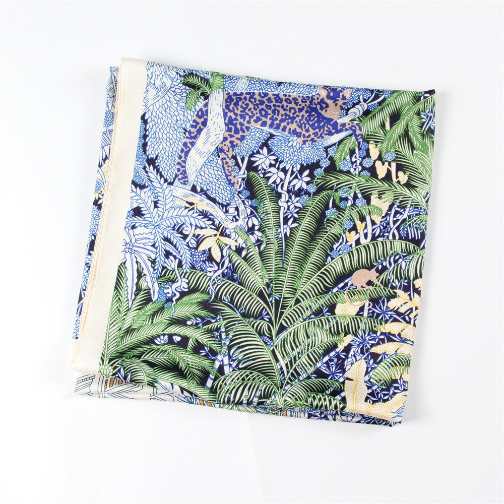봄과 가을 새로운 능직 실크 스카프 130cm 여성용 대형 스퀘어 스카프 포레스트 호텔 인쇄 헤드 스카프 자외선 차단제 숄 스카프