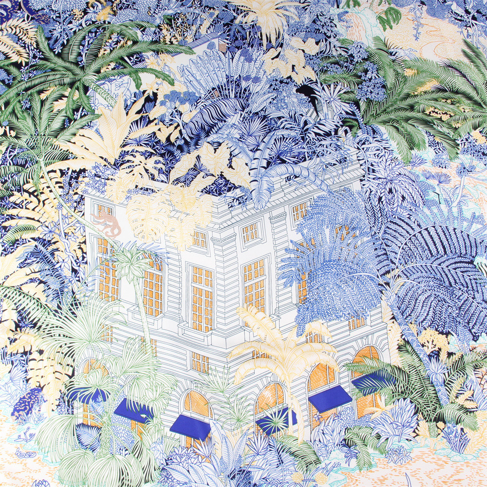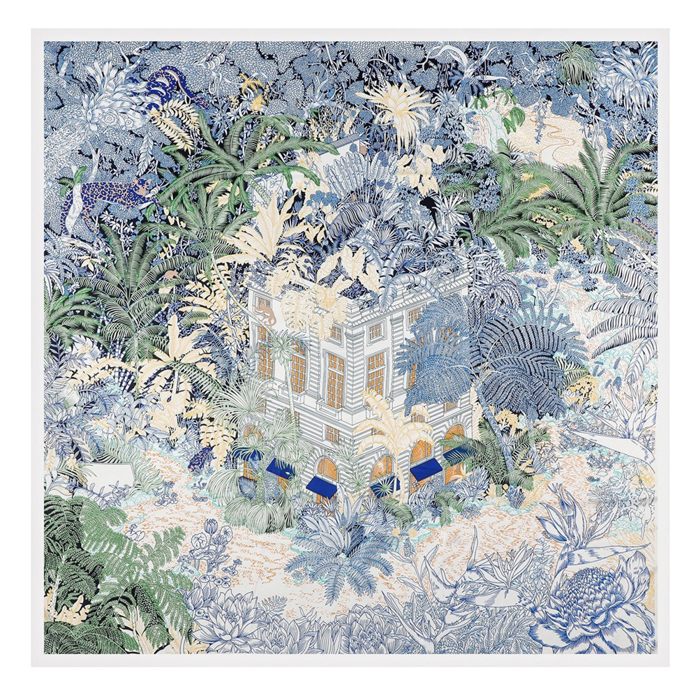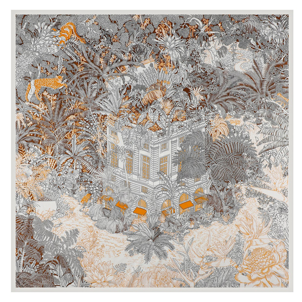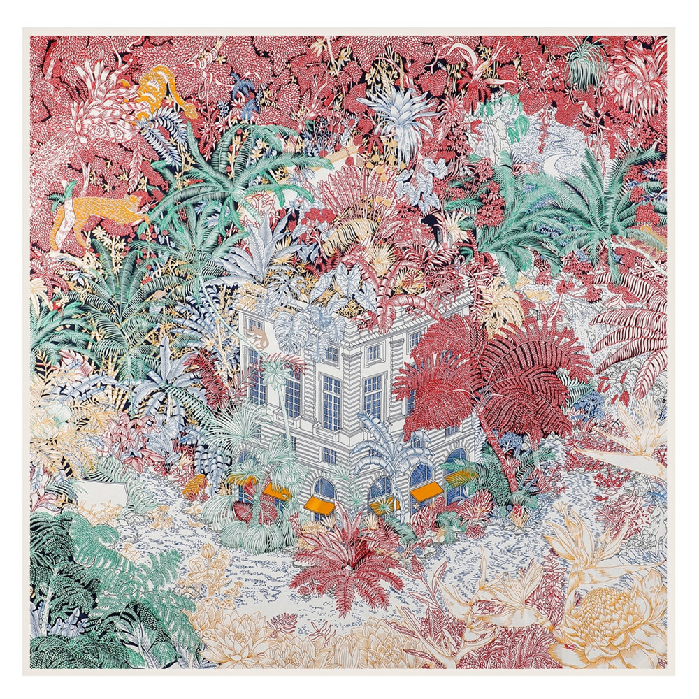 봄과 가을 새로운 능직 실크 스카프 130cm 여성용 대형 스퀘어 스카프 포레스트 호텔 인쇄 헤드 스카프 자외선 차단제 숄 스카프