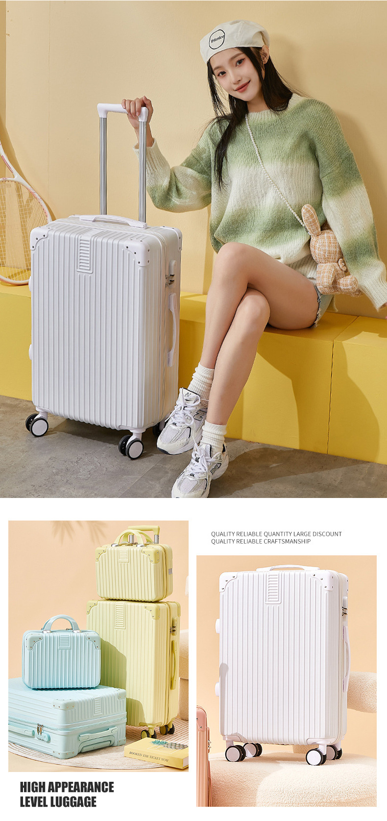트렌디한 이중 수납 박스, 레트로 여행 가방, 여학생들이 자주 사용하는 비밀번호 가방, 남성용 한국 스타일 대용량 가방, 회전 바퀴스토어 가기