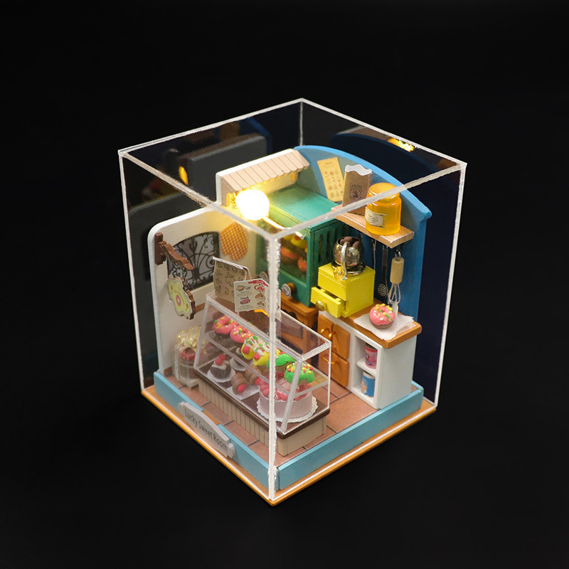 Hongda DIY 오두막 음악 순간 나무 수제 건축 조립 미니 오두막 창조적 인 장난감 선물 장식품스토어 가기