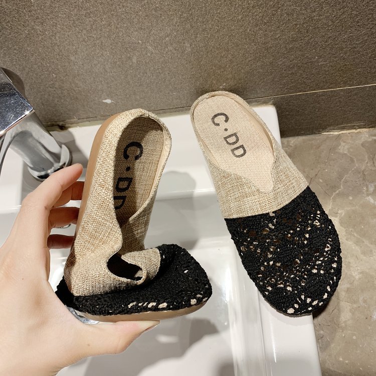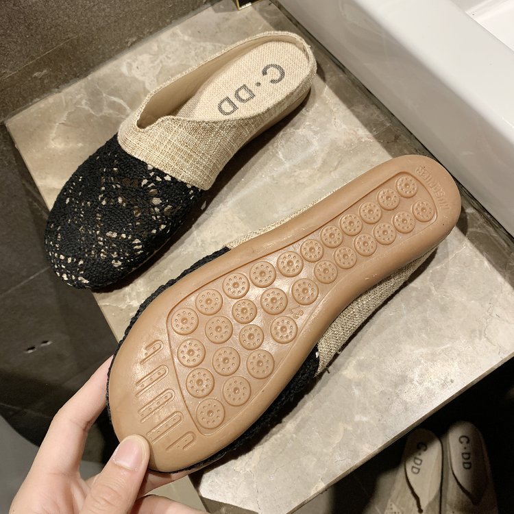 Baotou 슬리퍼 여자의 여름 새로운 패션 겉옷 레이스 게으른 슬리퍼 플랫 힐 슬리퍼